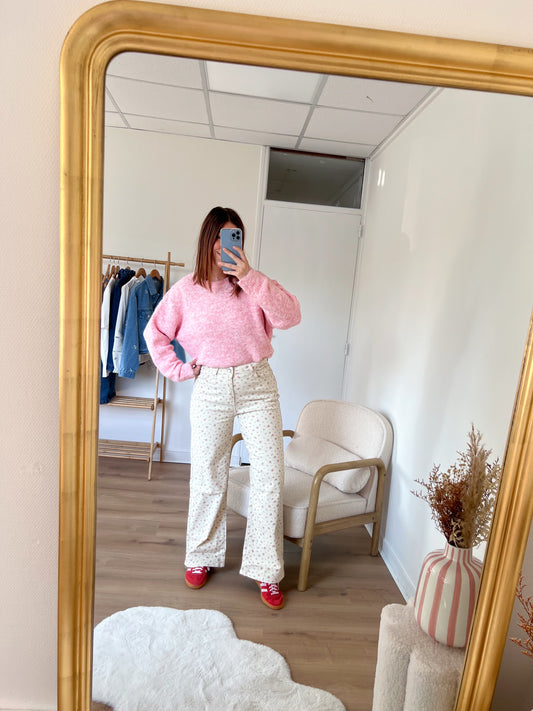 Jean flare Julia à petites fleurs roses