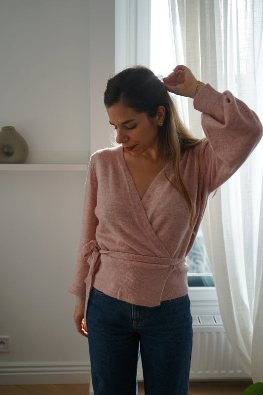 Cardigan à noeud en laine et mohair Pia rose