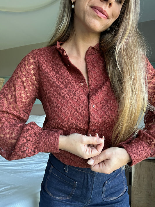 Blouse brodée Isaure terracotta