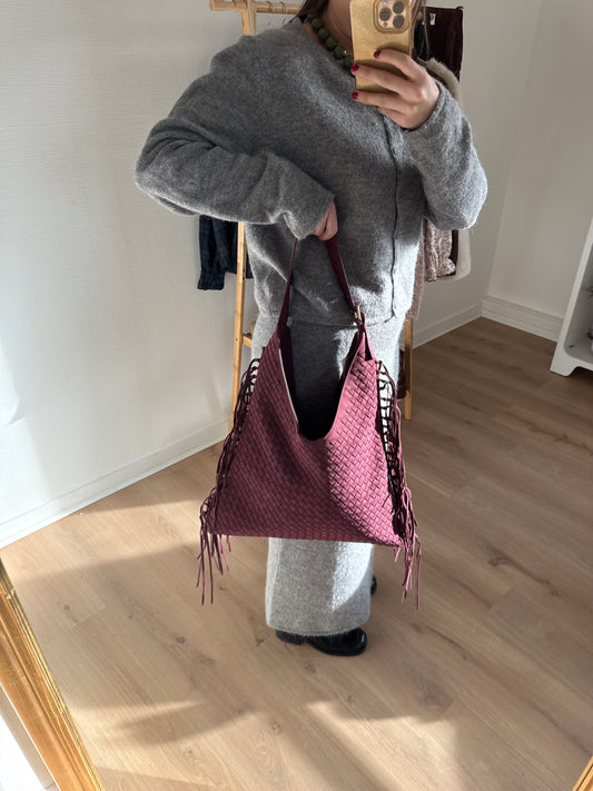 Sac à main à franges en daim Lou bordeaux
