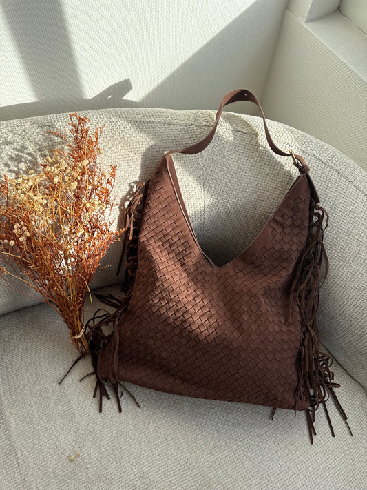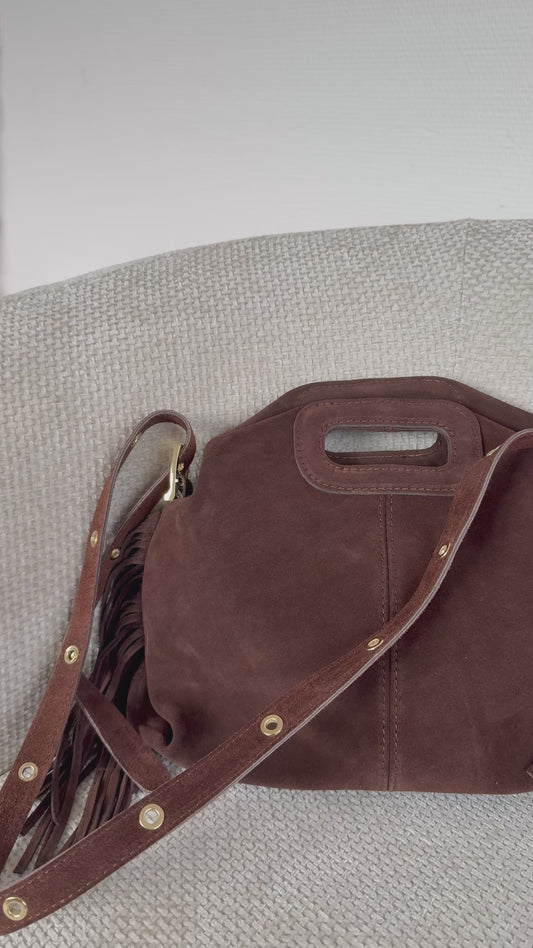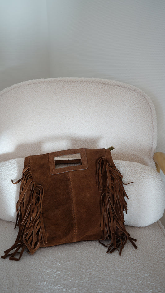 Sac à main à franges en daim Lou chocolat
