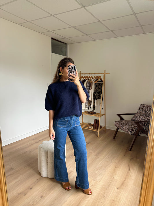 Maille en laine à manches courtes Brune bleu marine