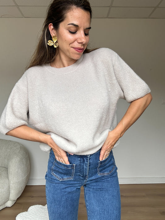 Maille en laine à manches courtes Brune beige