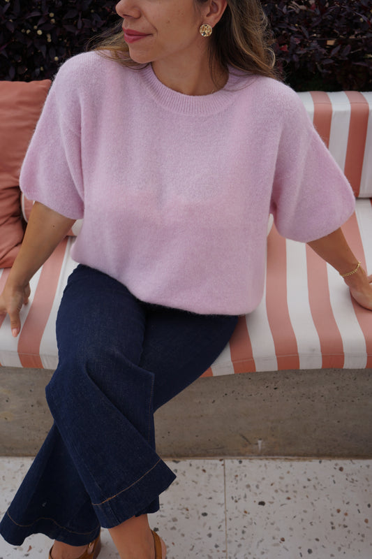 Maille en laine à manches courtes Brune rose