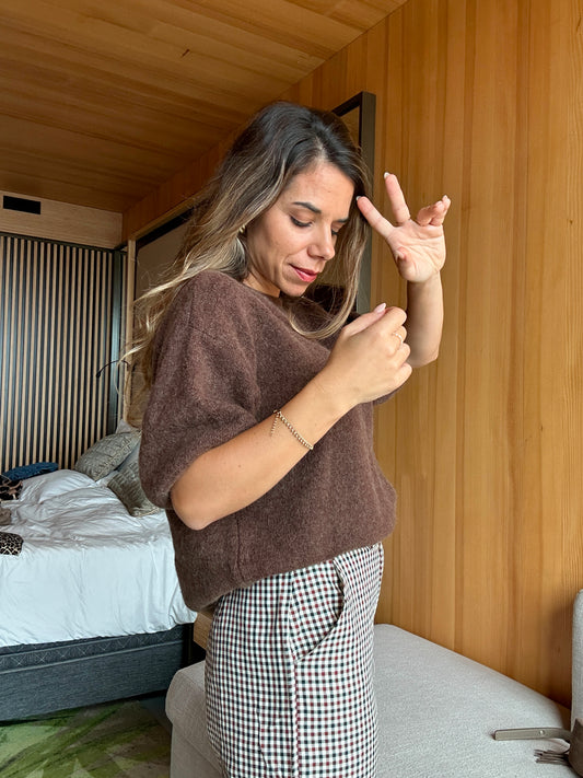 Maille en laine à manches courtes Brune chocolat