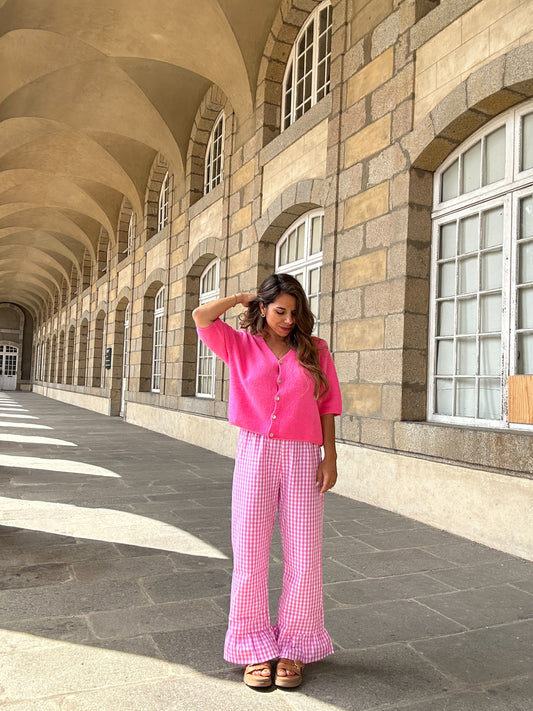 Maille à manches courtes Josephine rose bonbon