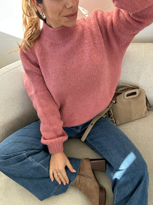 Pull en maille à col rond Hortense vieux rose