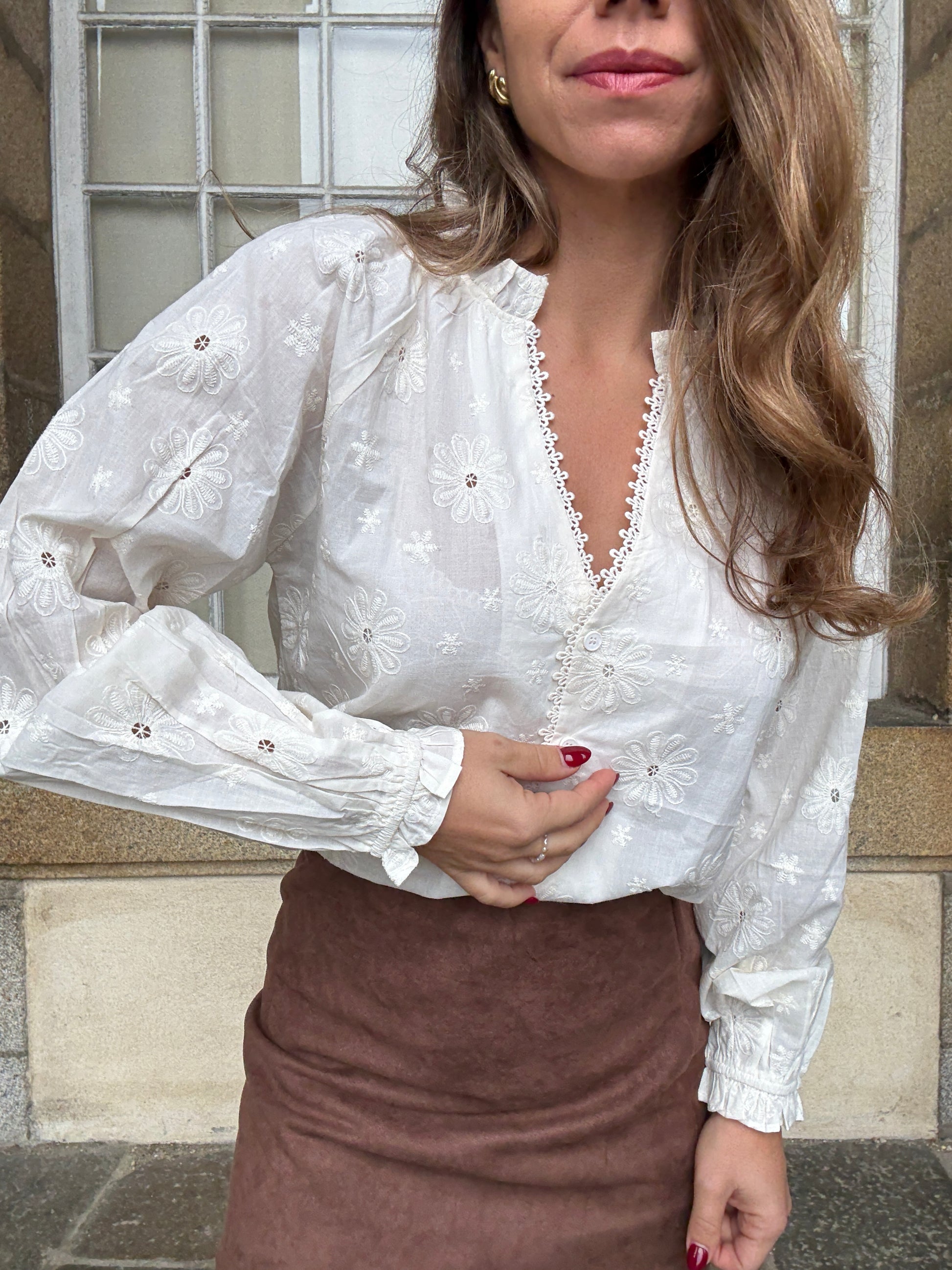 Craquez pour cette blouse aux fleurs brodées. Une blouse très tendance pour accompagner vos looks de printemps.
