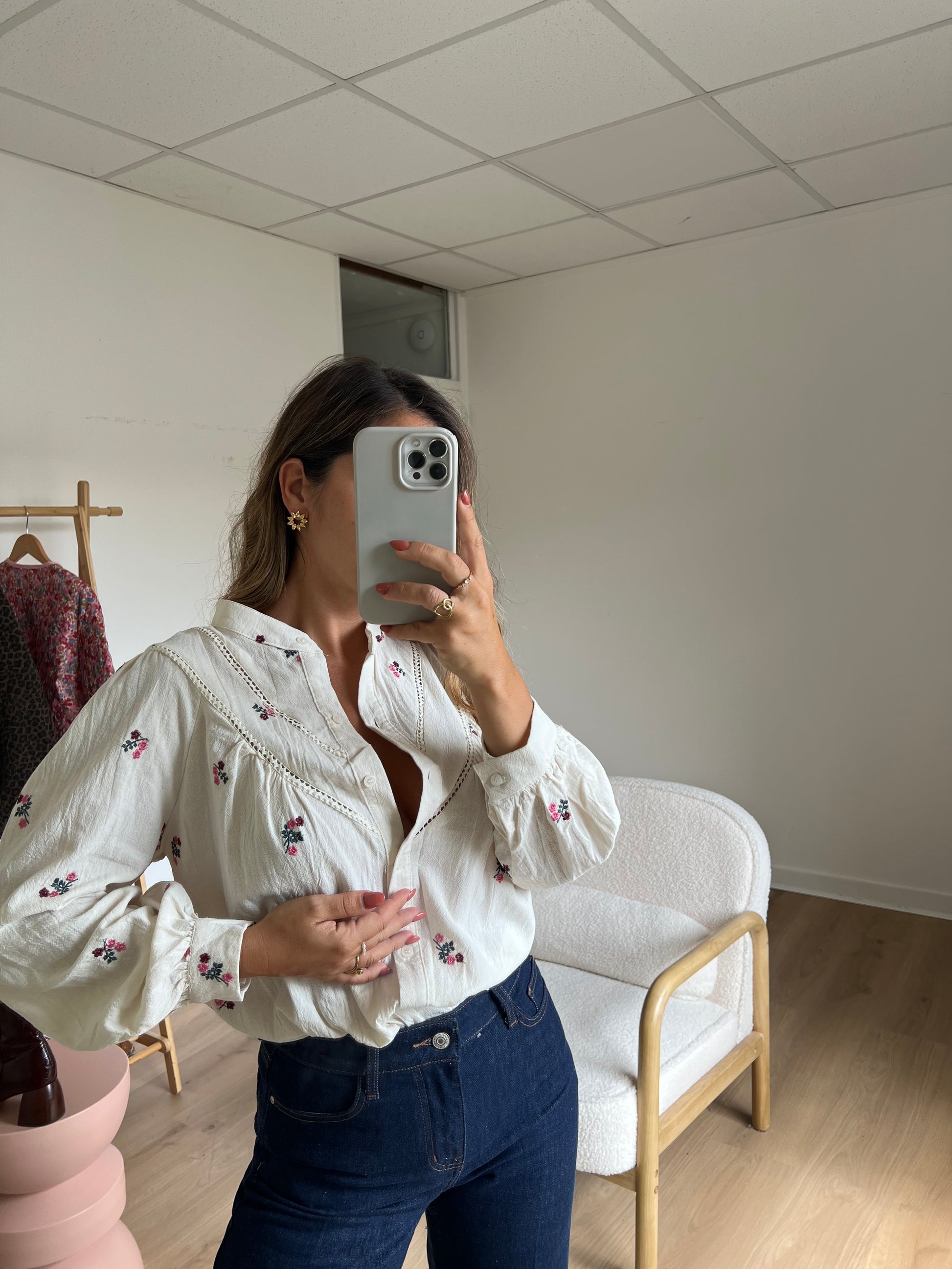 Craquez pour cette blouse aux fleurs brodées. Une blouse très tendance pour accompagner vos looks de printemps.