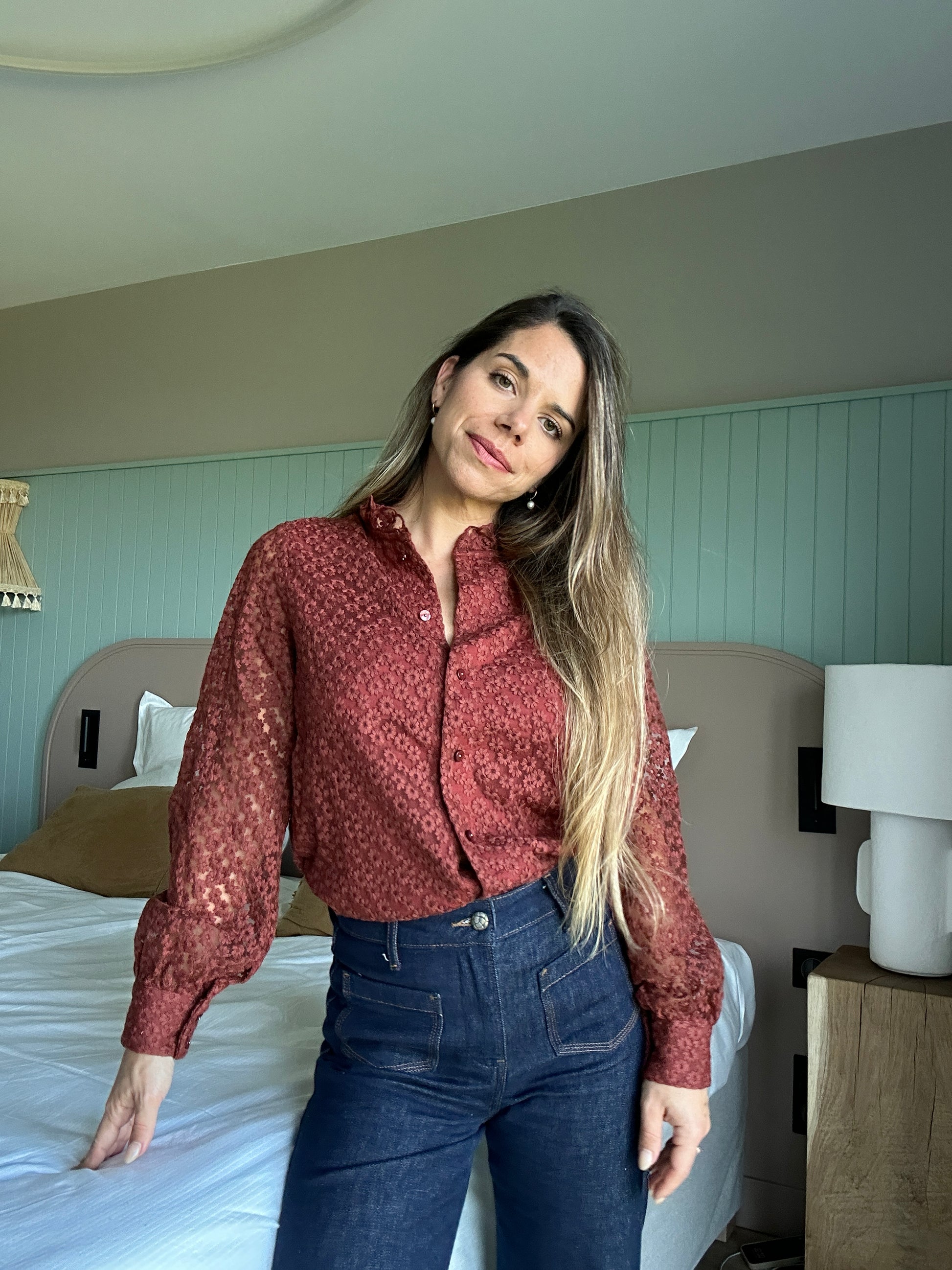 Blouse brodée Isaure terracotta