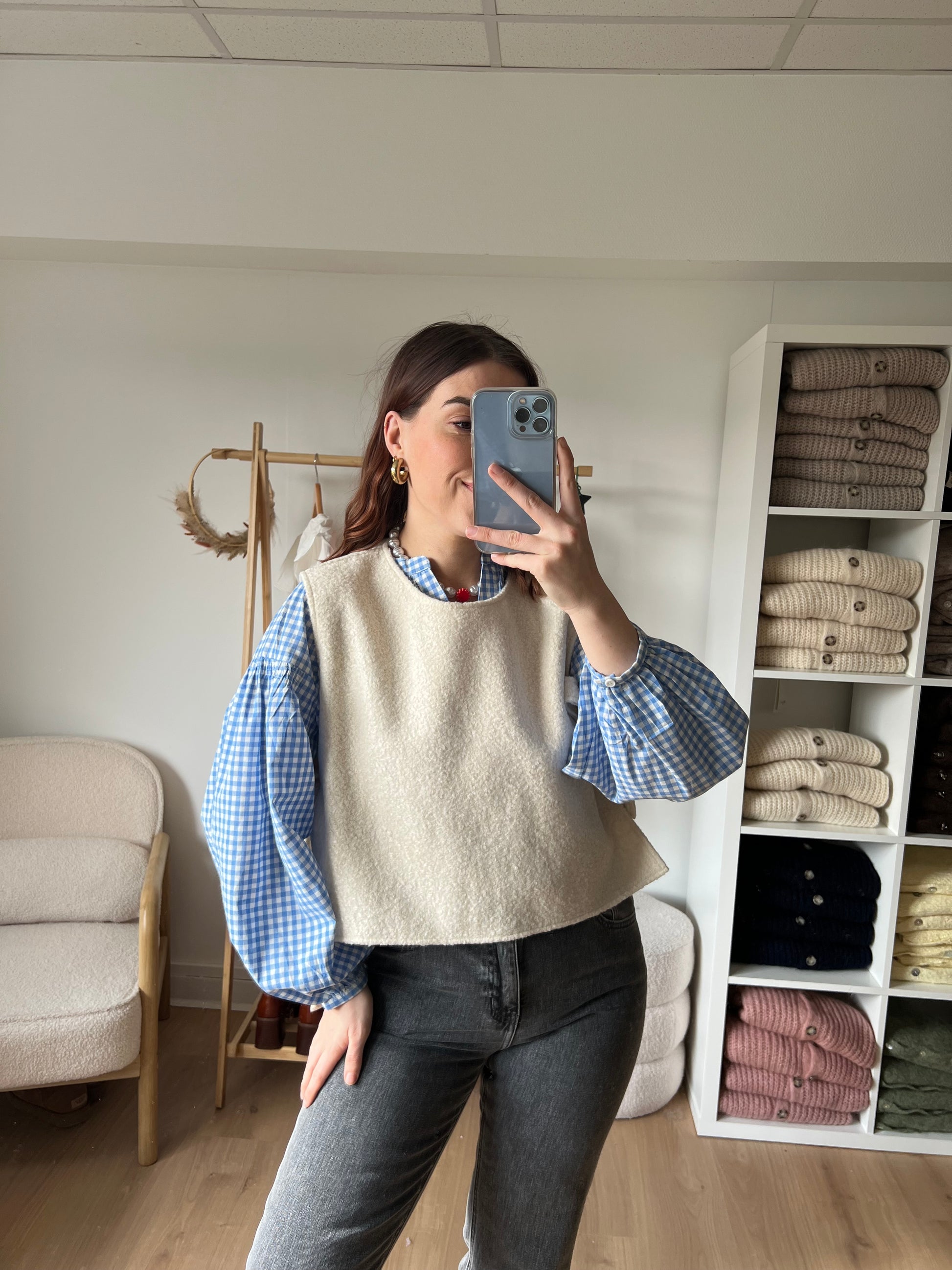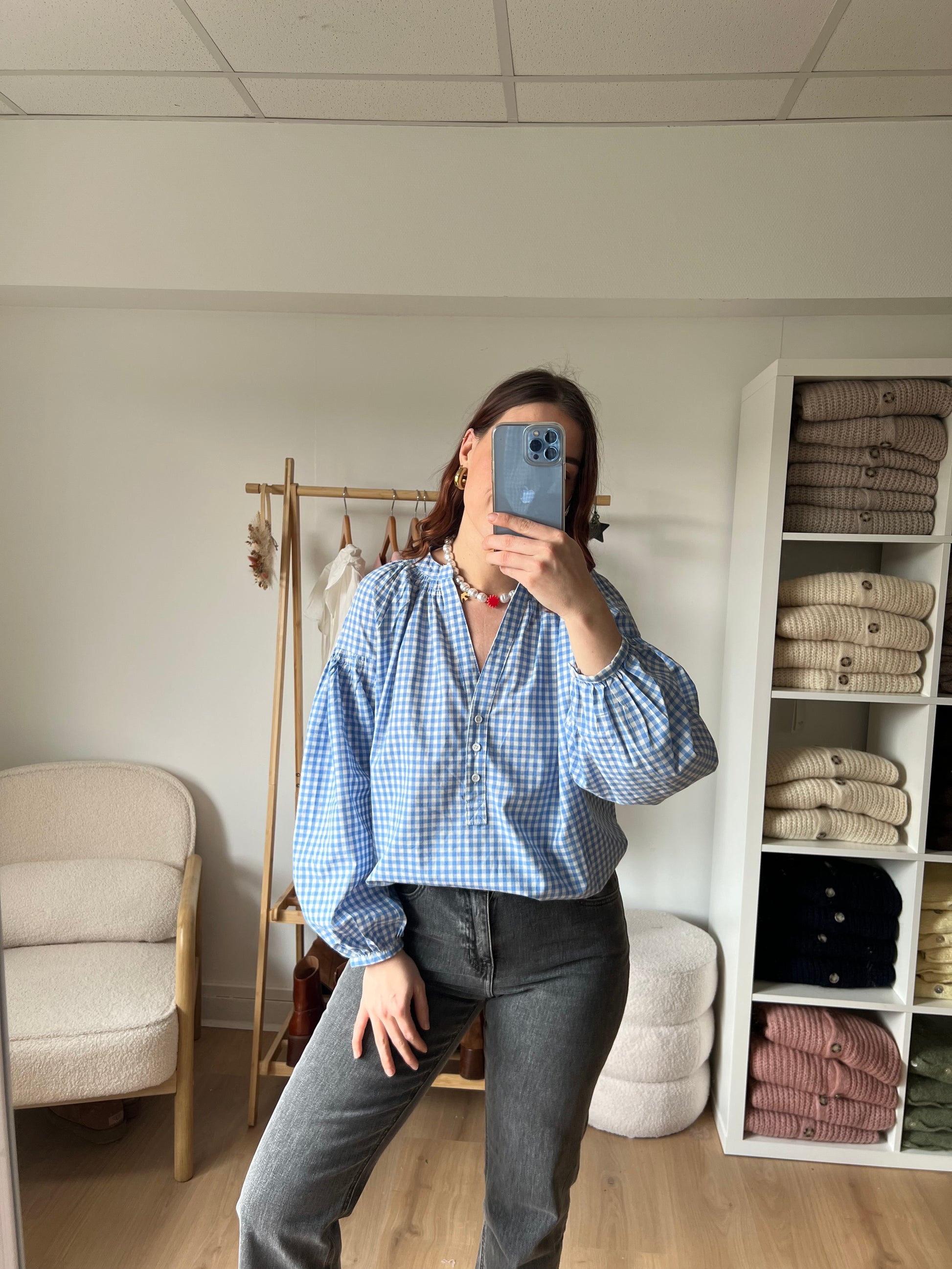 Blouse vichy bleu ciel Clothilde