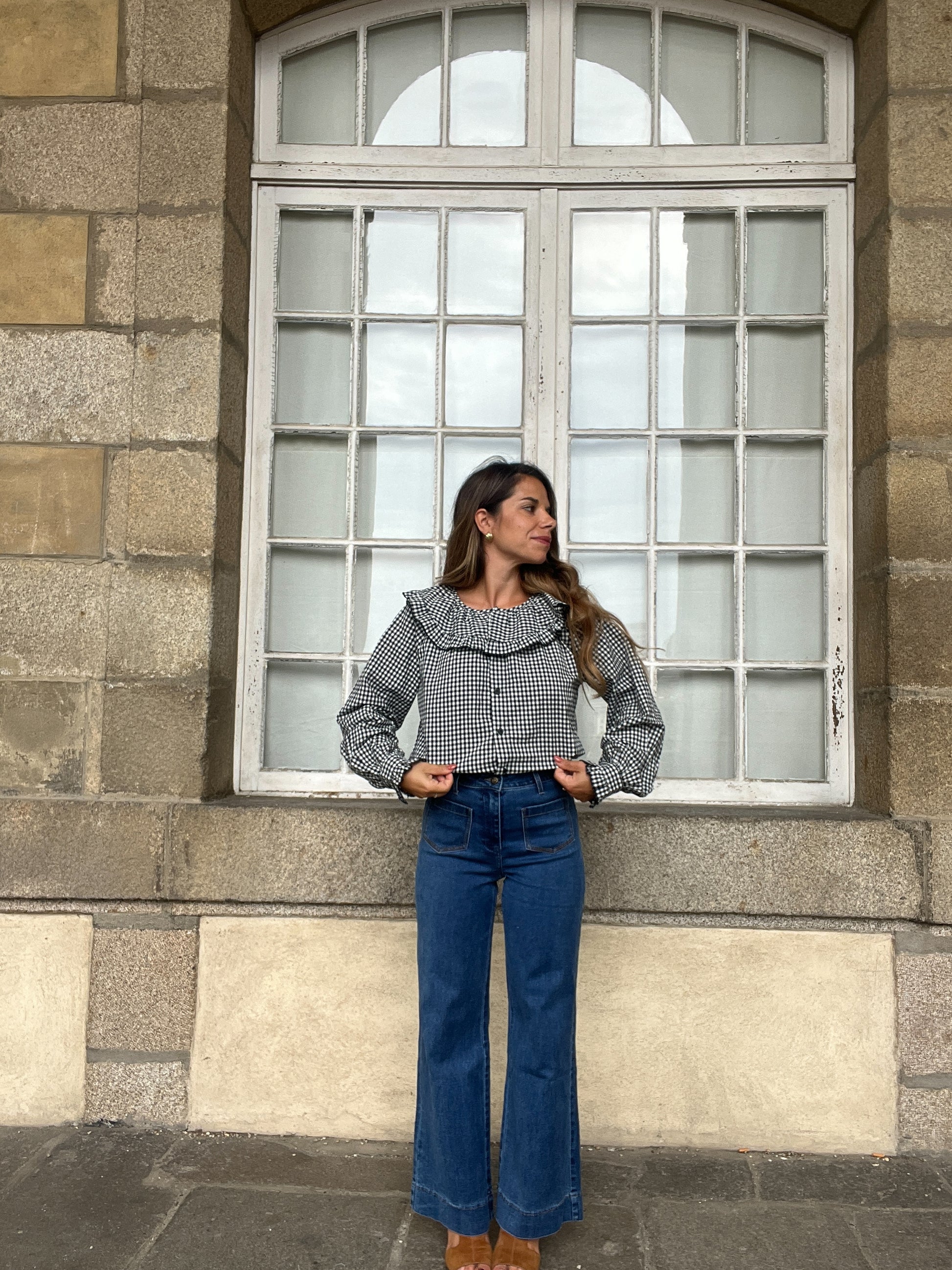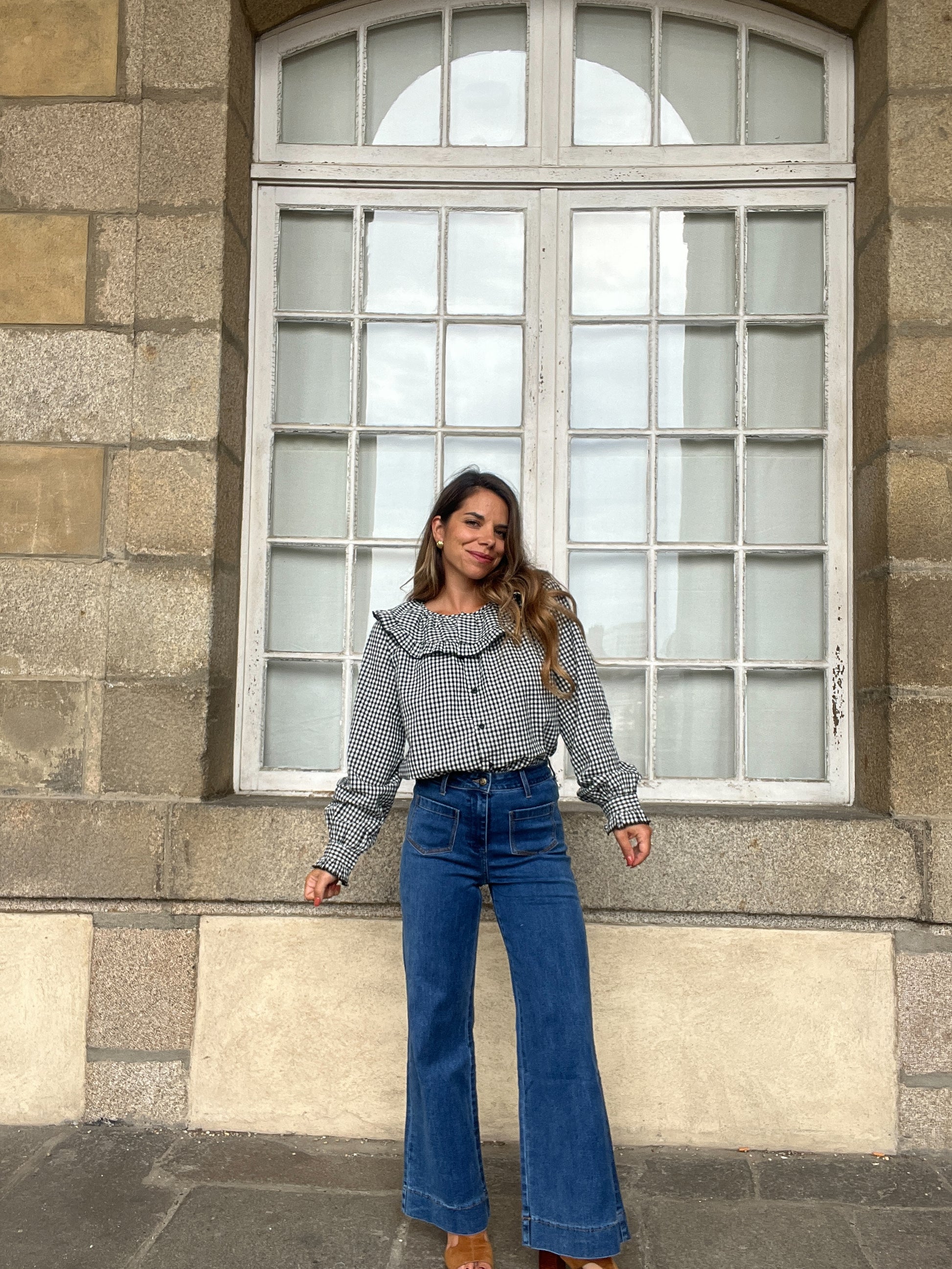 Un incontournable pour toutes les saisons : la blouse vichy noire. Cette tendance indémodable s'adapte à tous vos styles. Dotée d'un col à volants, notre blouse vichy noire est l'élément clé de votre tenue.