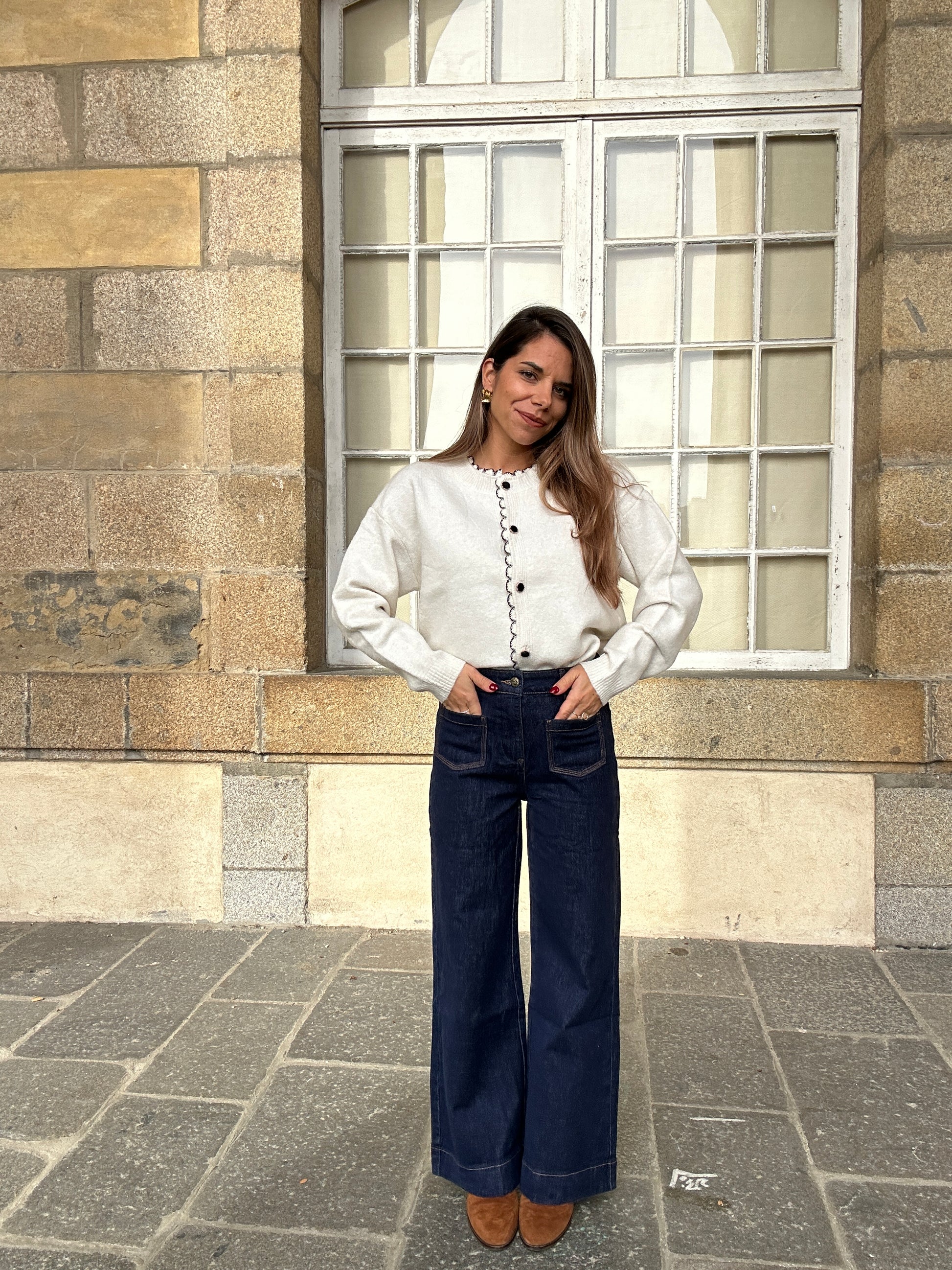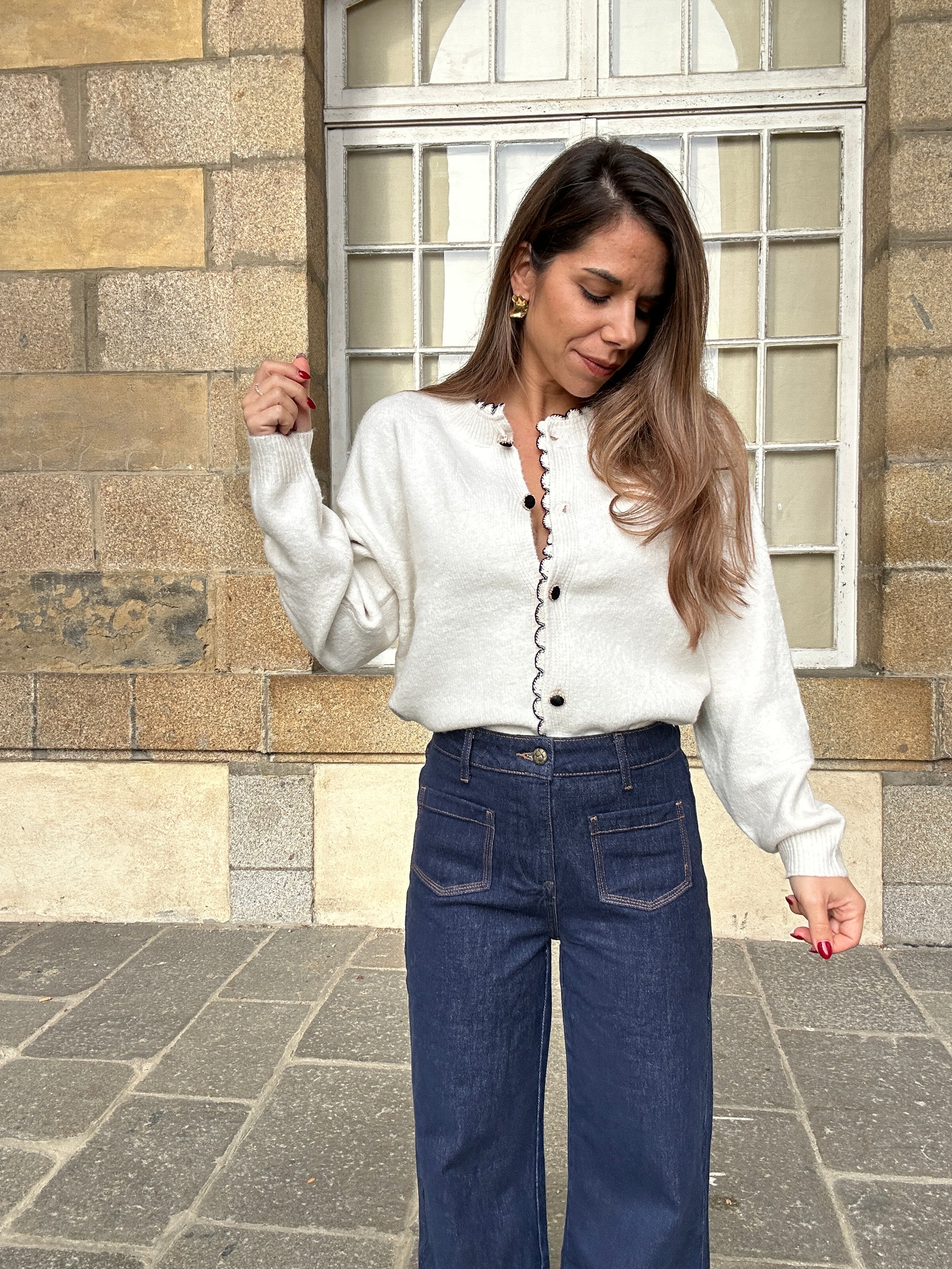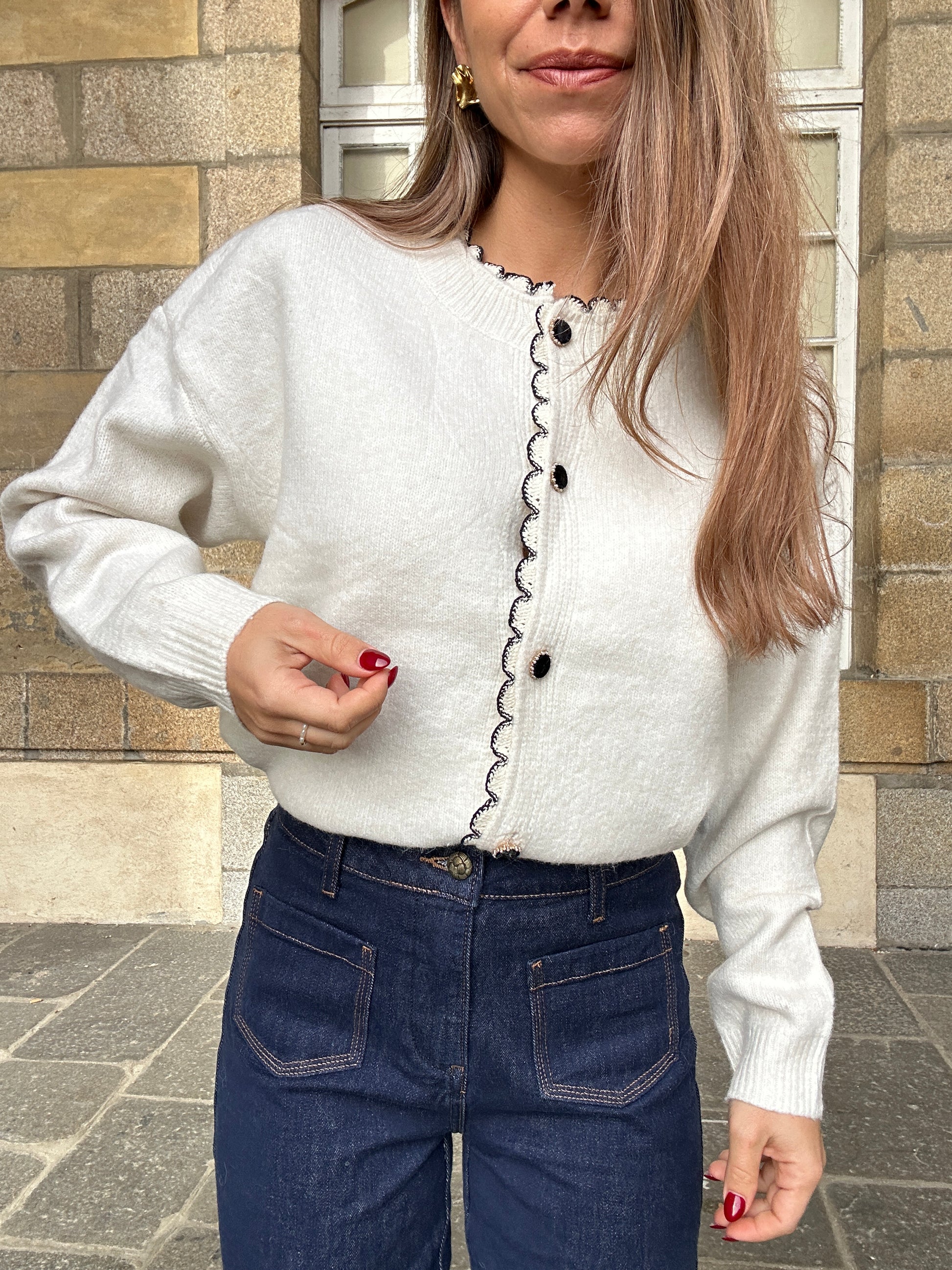 Un cardigan tout doux et chaleureux, avec de jolis boutons qui font toute la différence. Parfait pour rester bien au chaud avec style !