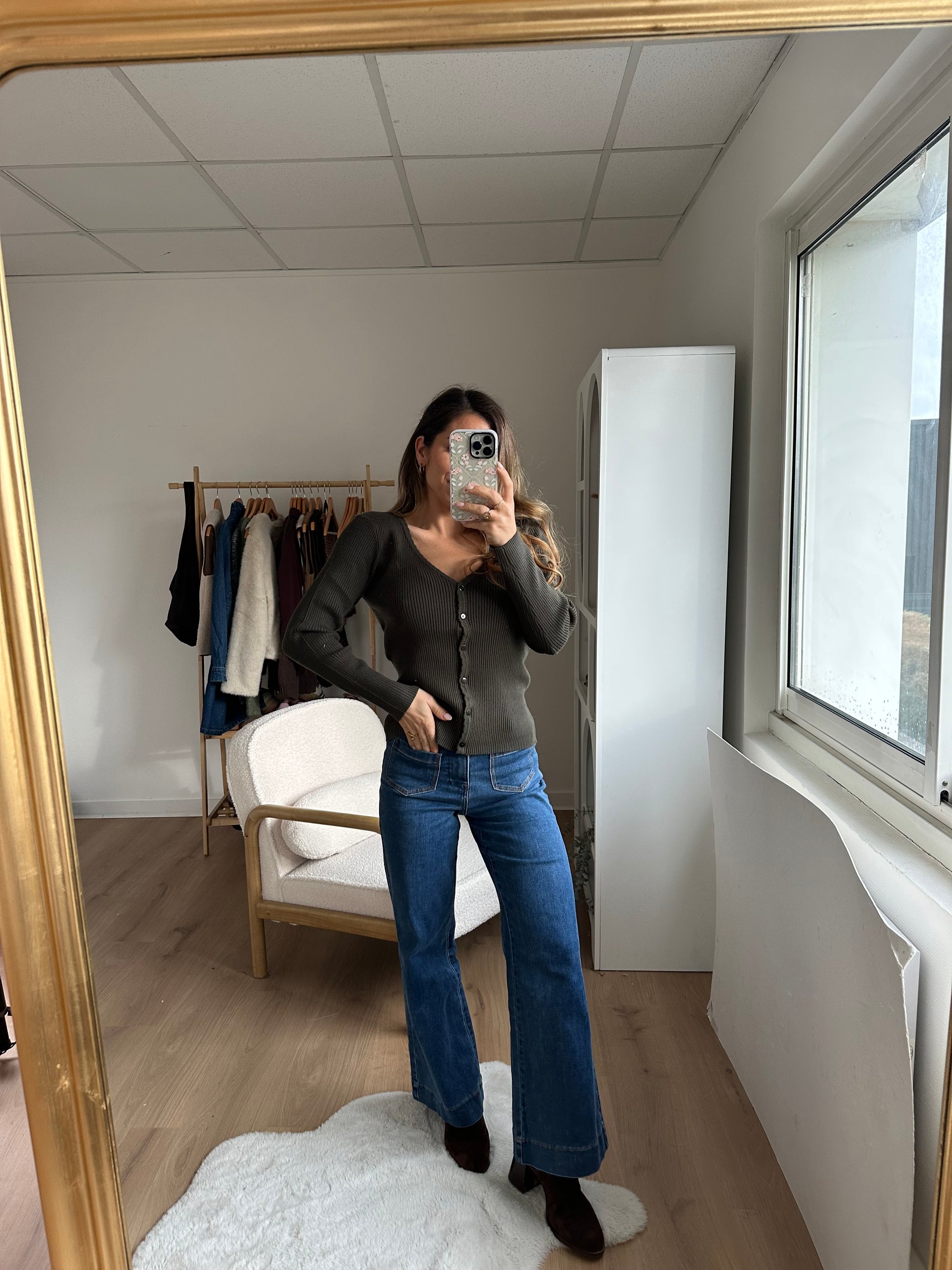 Cardigan fin Louise kaki