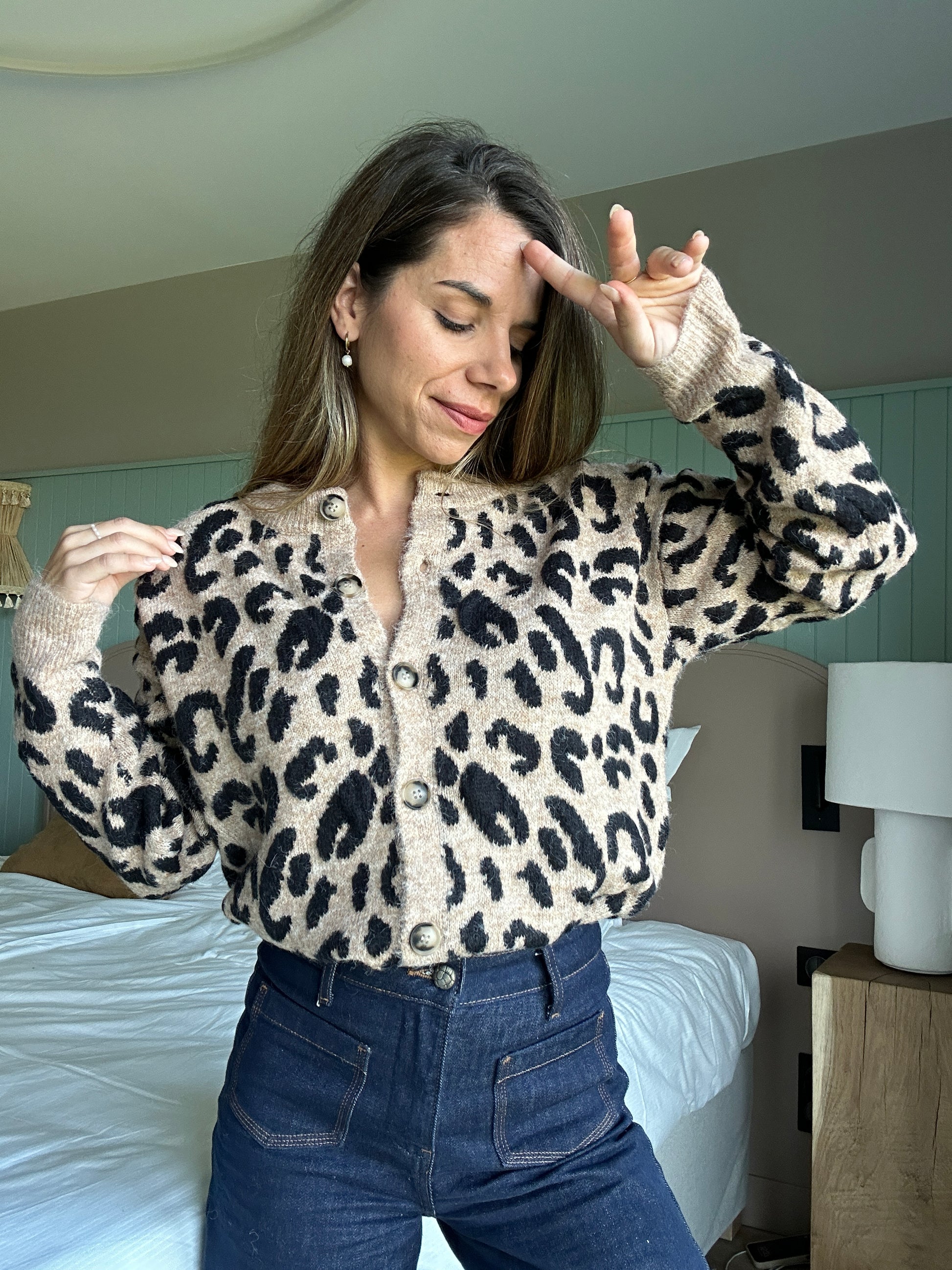 Un joli cardigan léopard comme pièce forte de tous vos looks!