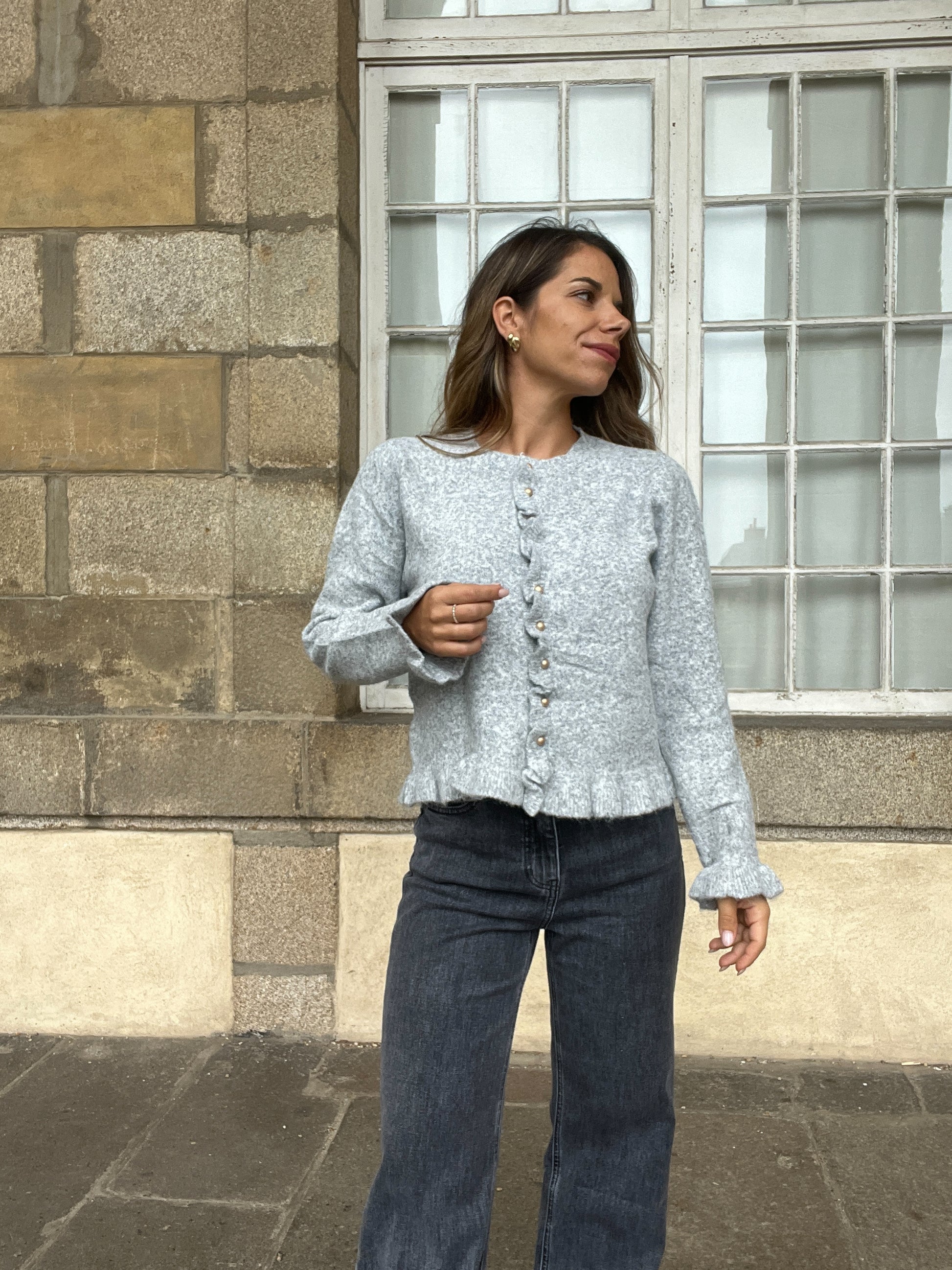 Ce délicat cardigan, orné de jolis volants au poignets et d'une patte de boutonnage soyeuse, ajoutera une touche de féminité et d'élégance à toutes vos tenues.