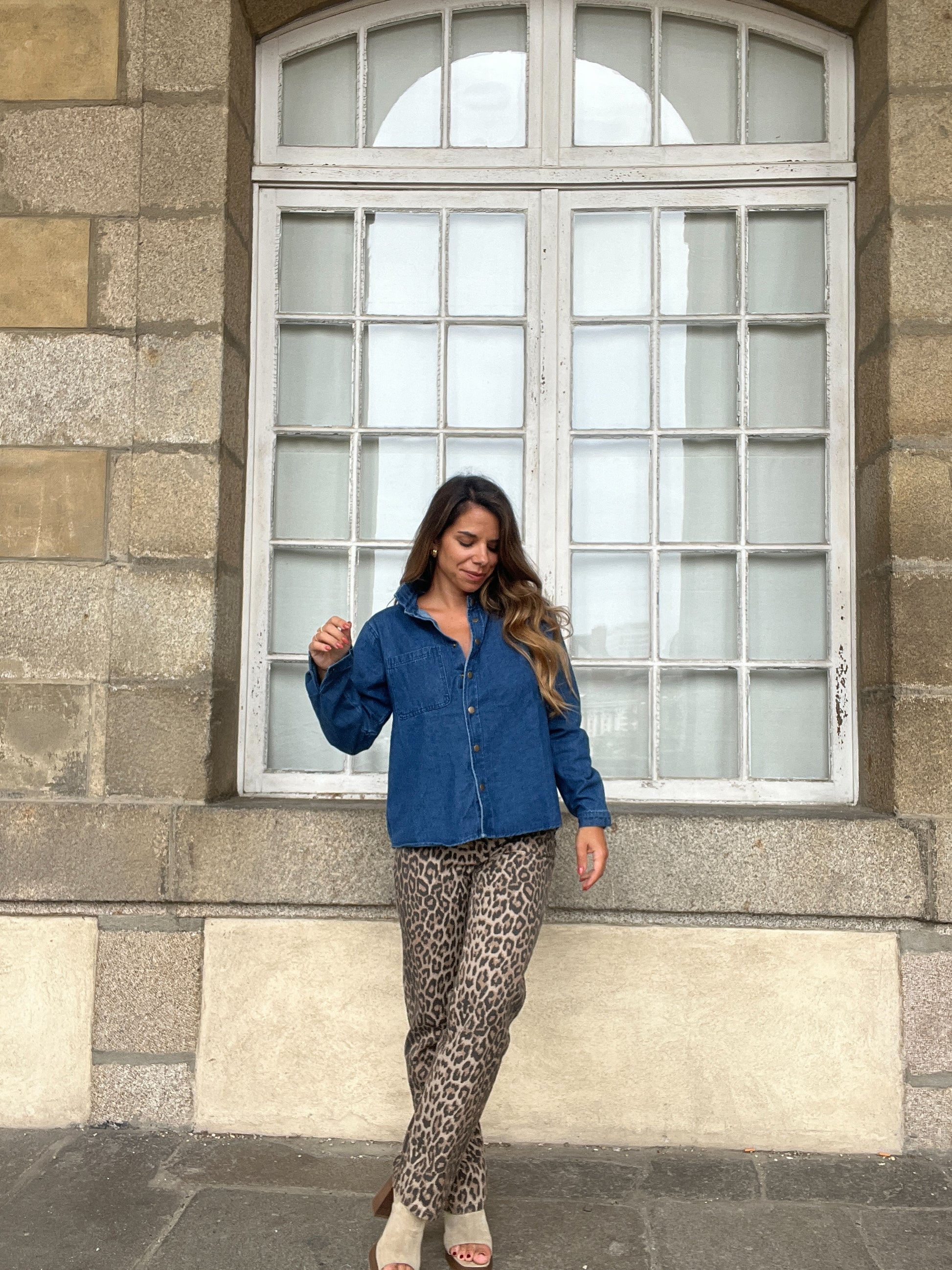Craquez pour notre chemise en jean Alba, avec son col montant volanté, dotée d’une fermeture à boutons-pression et d’une poche poitrine. Une pièce forte dans votre dressing, avec une touche féminine pour un style à la fois décontracté et élégant.