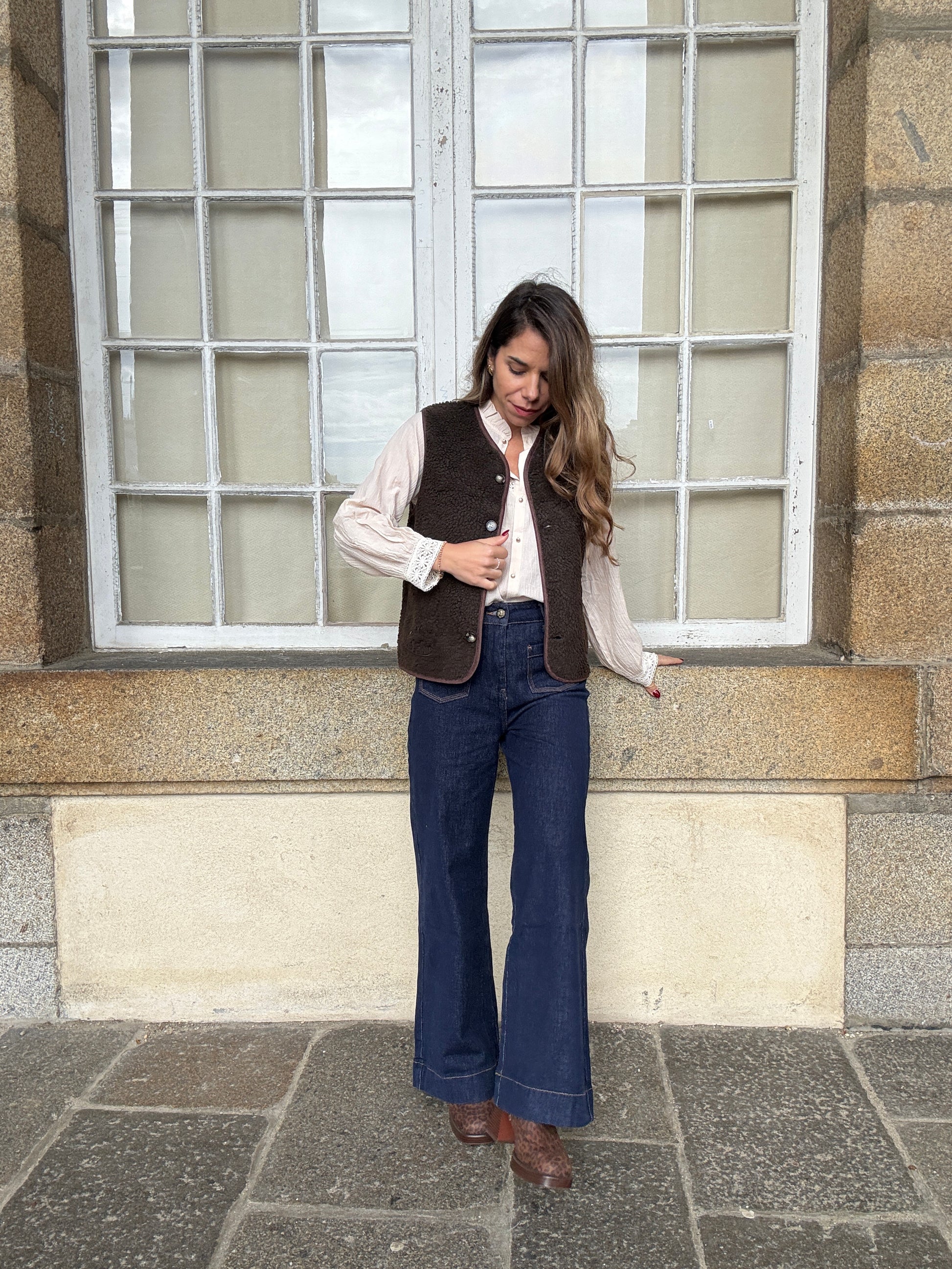 Un gilet berger avec des jolis boutons et des détails sur les contours pour accessoiriser tous vos looks! Facile à associer, il se porte sur un pull, une blouse ...
