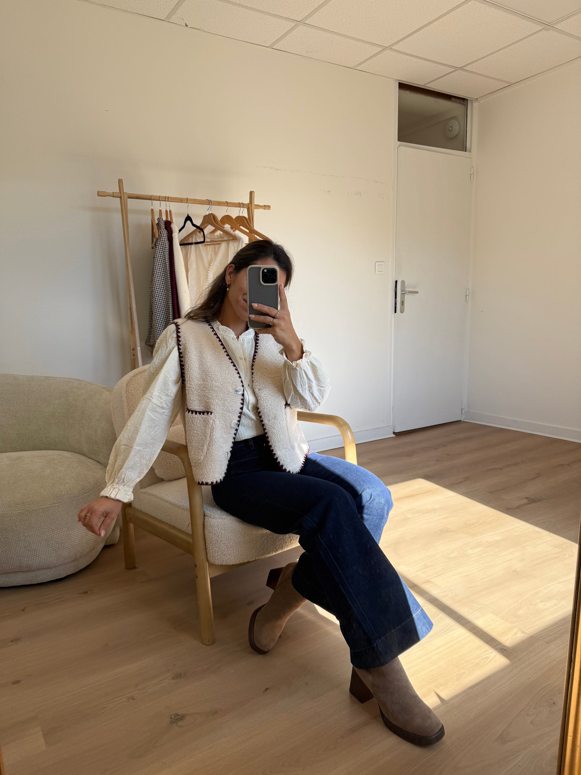 Un gilet berger avec des jolis boutons et des détails sur les contours pour accessoiriser tous vos looks! Facile à associer, il se porte sur un pull, une blouse ...