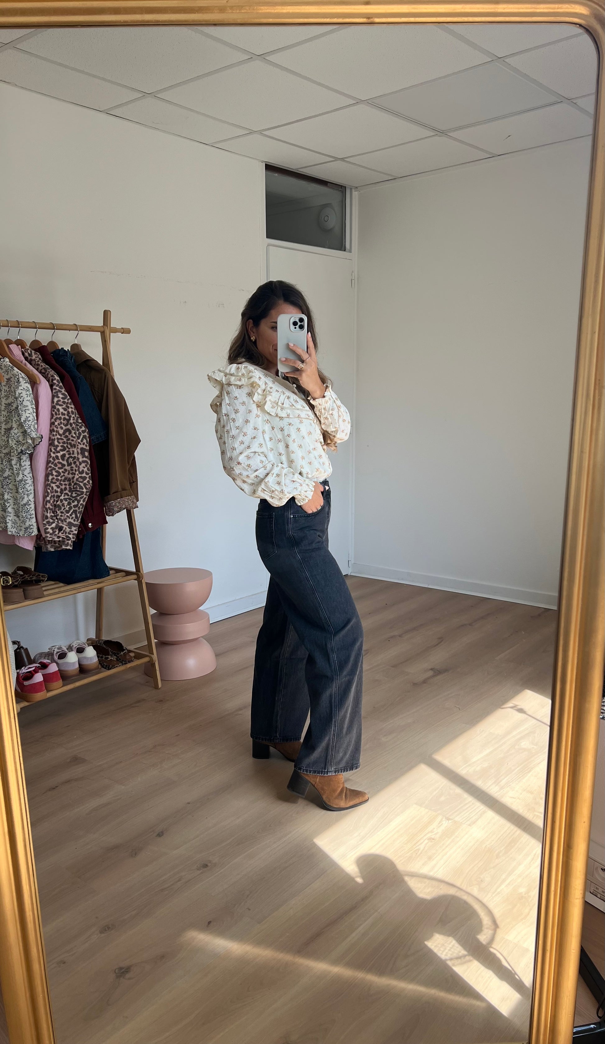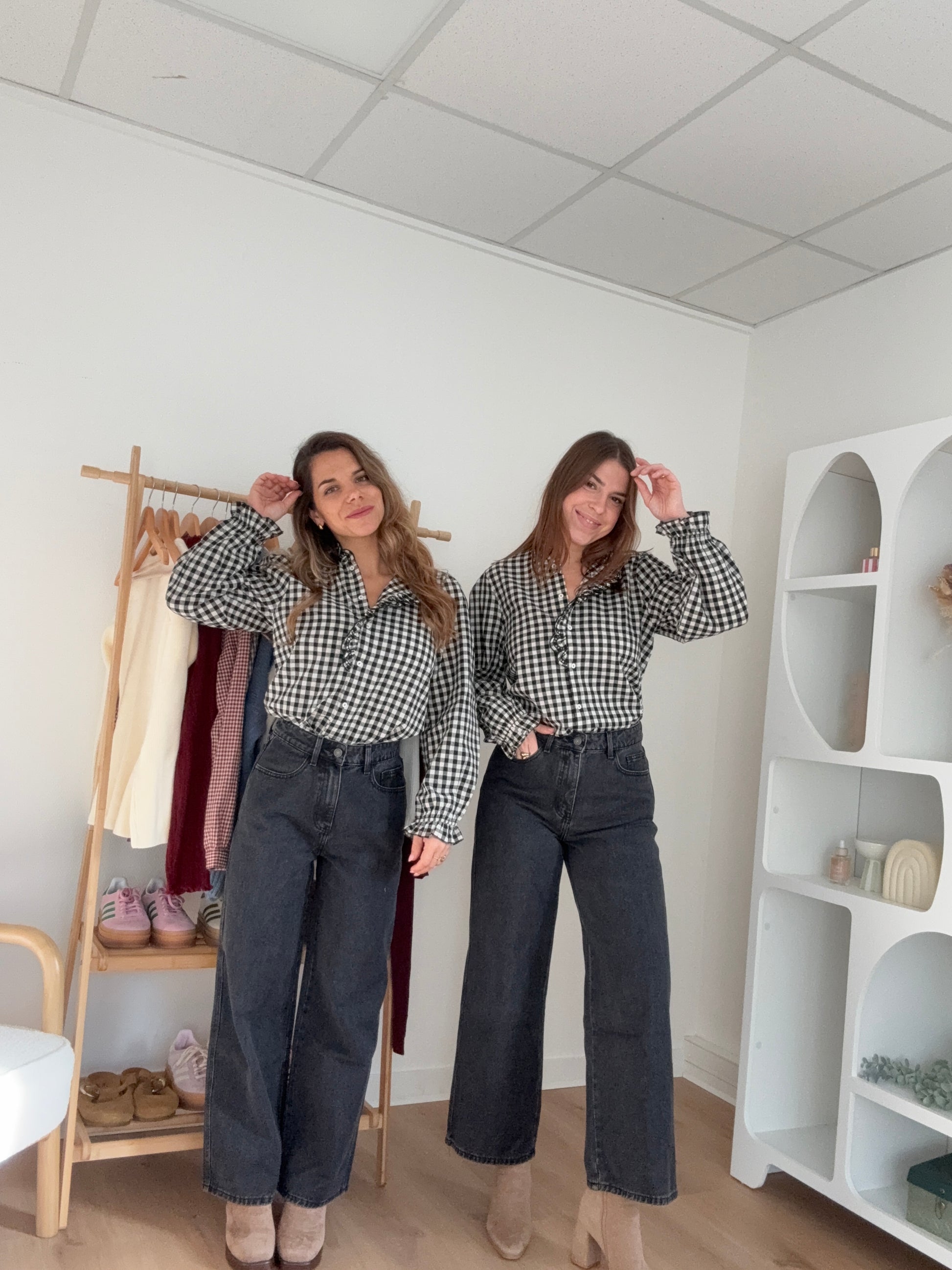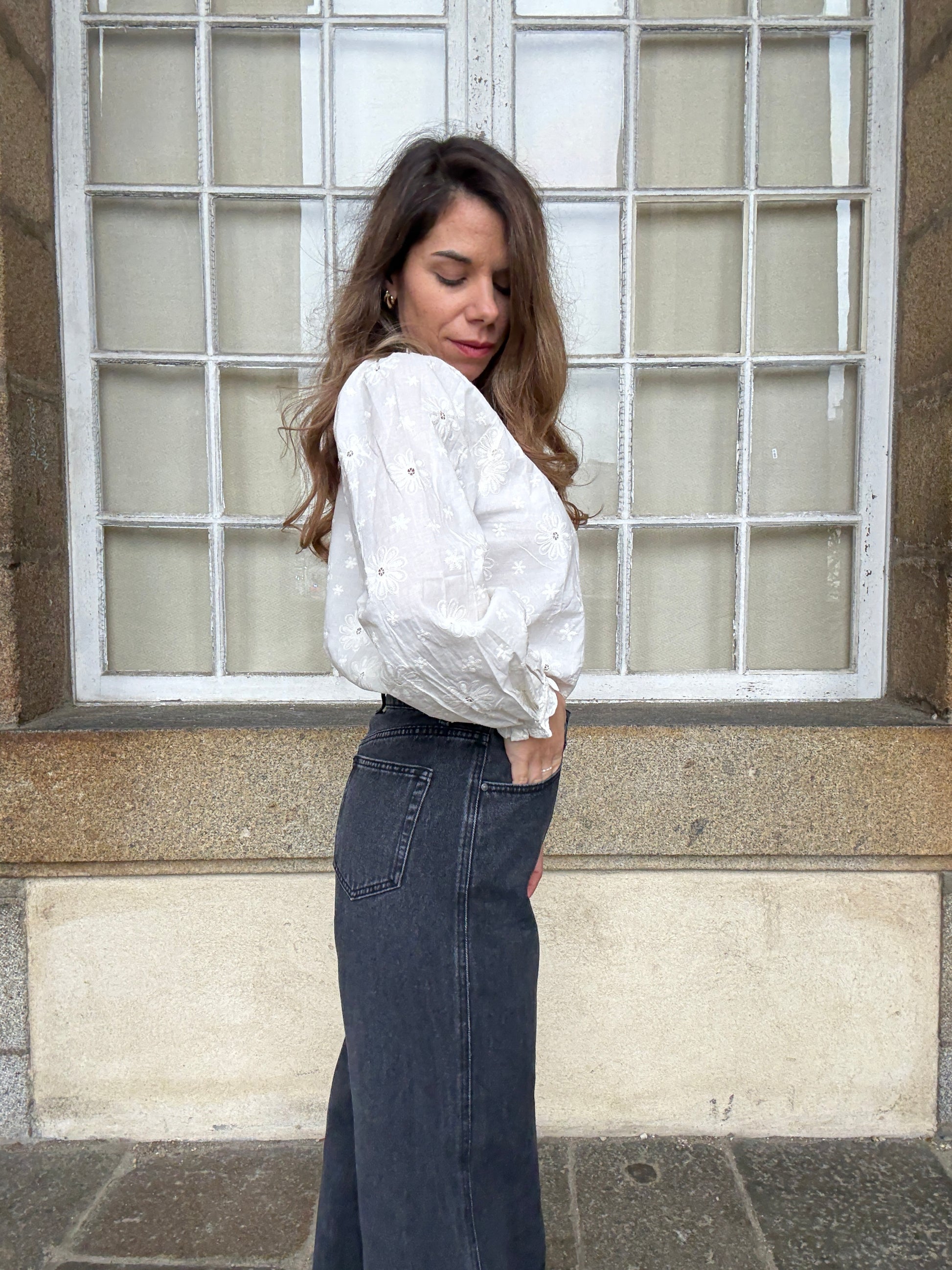Craquez pour notre jean Colombe : une coupe large et mi-haute évasée des hanches aux chevilles. Taille haute.