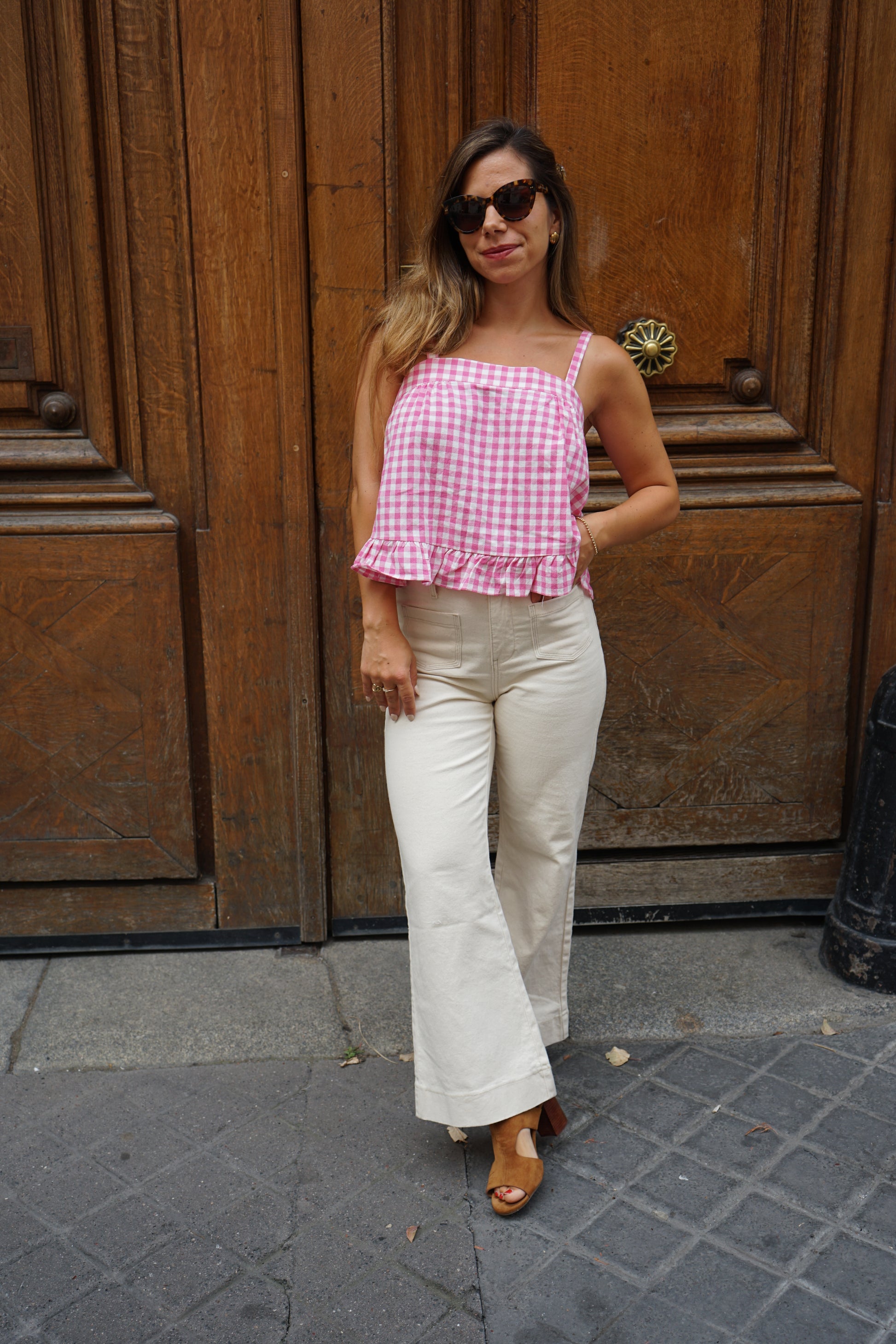 Craquez pour notre jean Gasparette : une coupe wide et taille haute évasée des hanches aux chevilles.