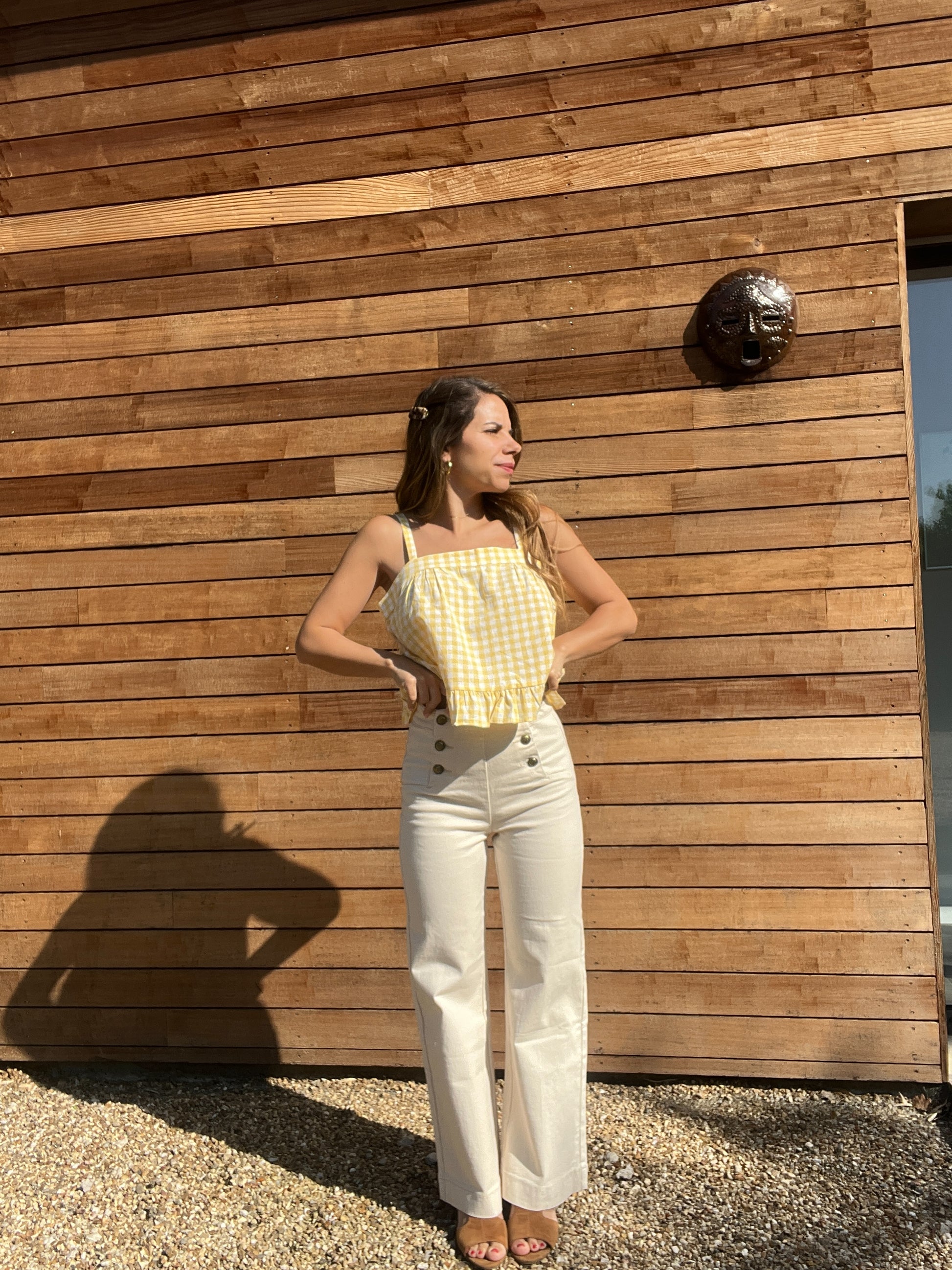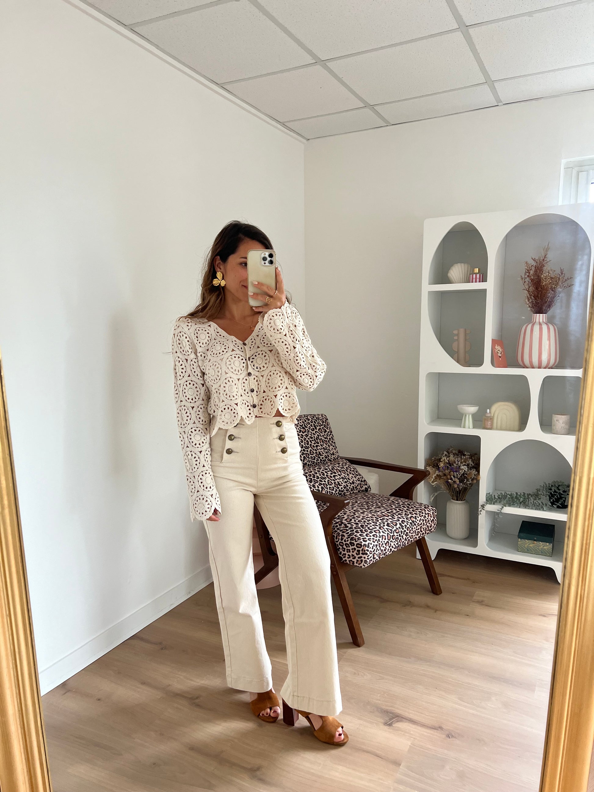 Craquez pour notre jean Victorine beige : une coupe évasée des hanches aux chevilles. Ce jean sublimera toutes les morphologies.