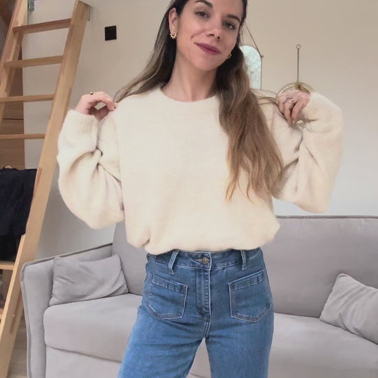 Optez pour ce pull loose, doux et confortable, parfait pour un look décontracté et stylé au quotidien. Un essentiel à avoir dans sa garde-robe !