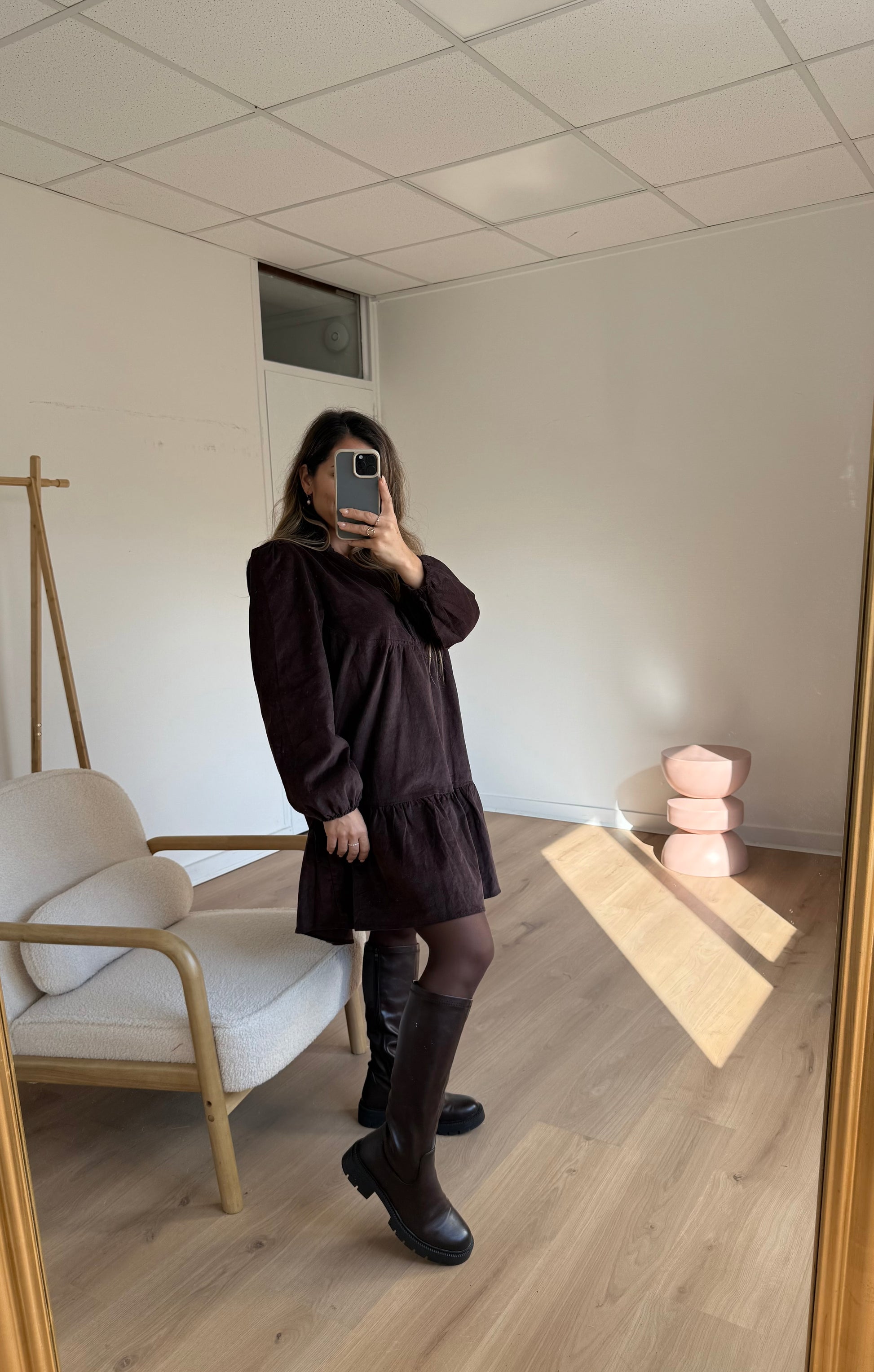 Avec son col élégant et son toucher velours ultra doux, la robe Hortense sera la robe de l'automne/hiver