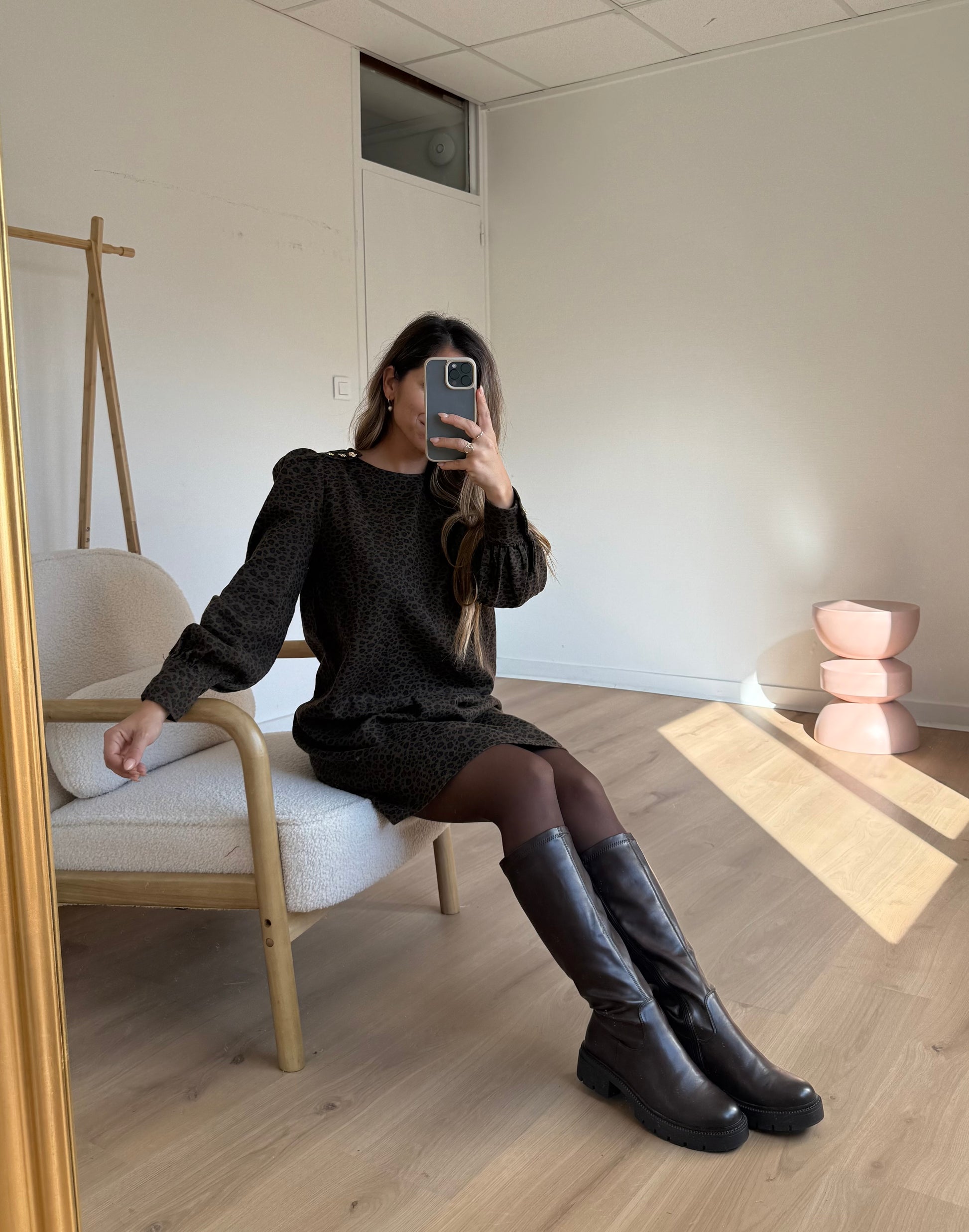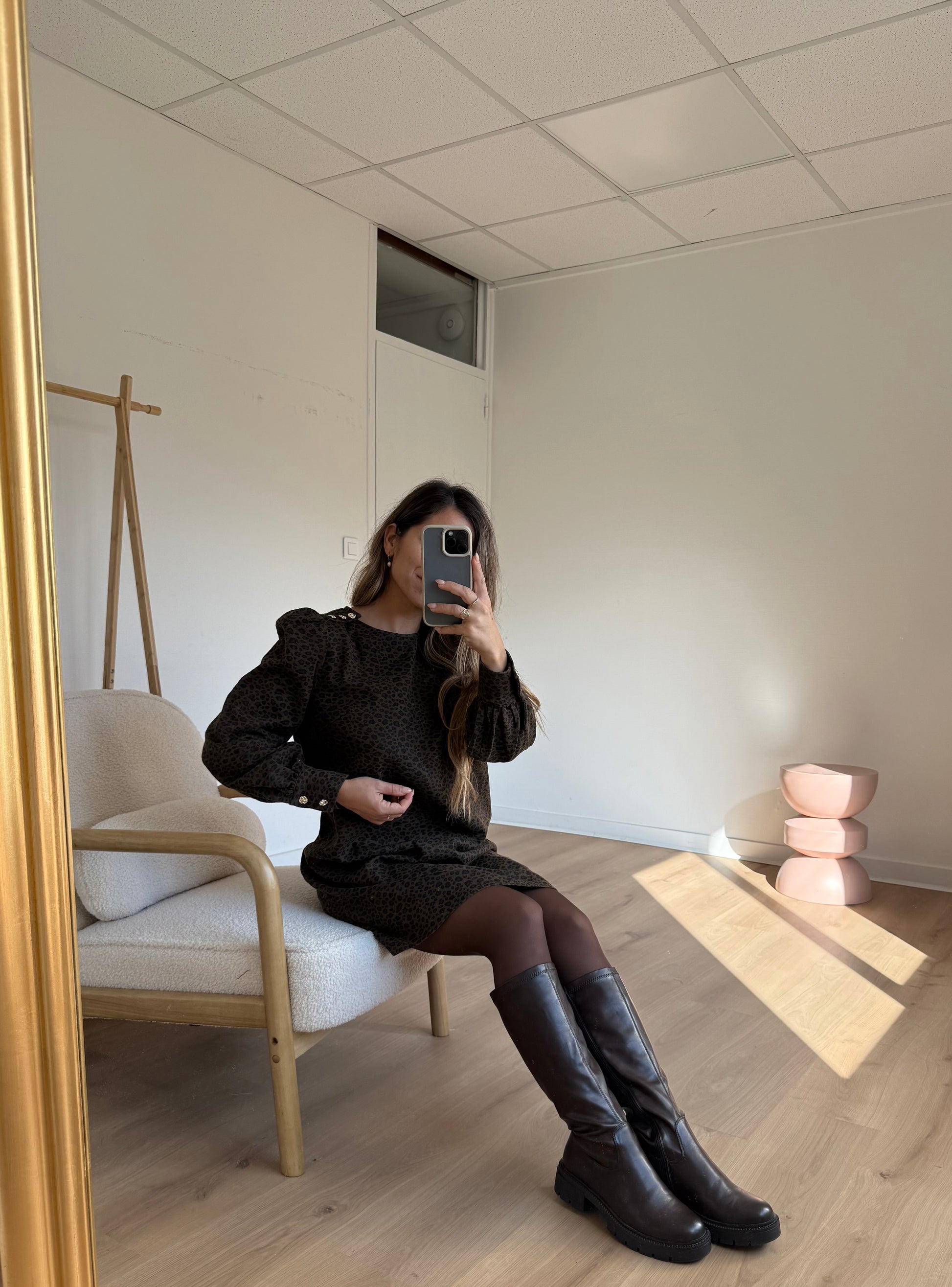 Craquez pour cette robe Victoire. Sa texture en velours la rend élégante et cosy pour l'automne/hiver.