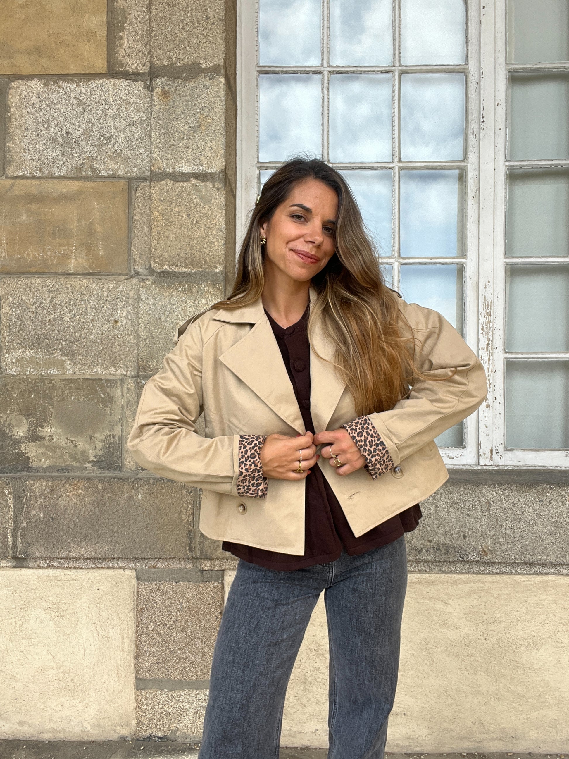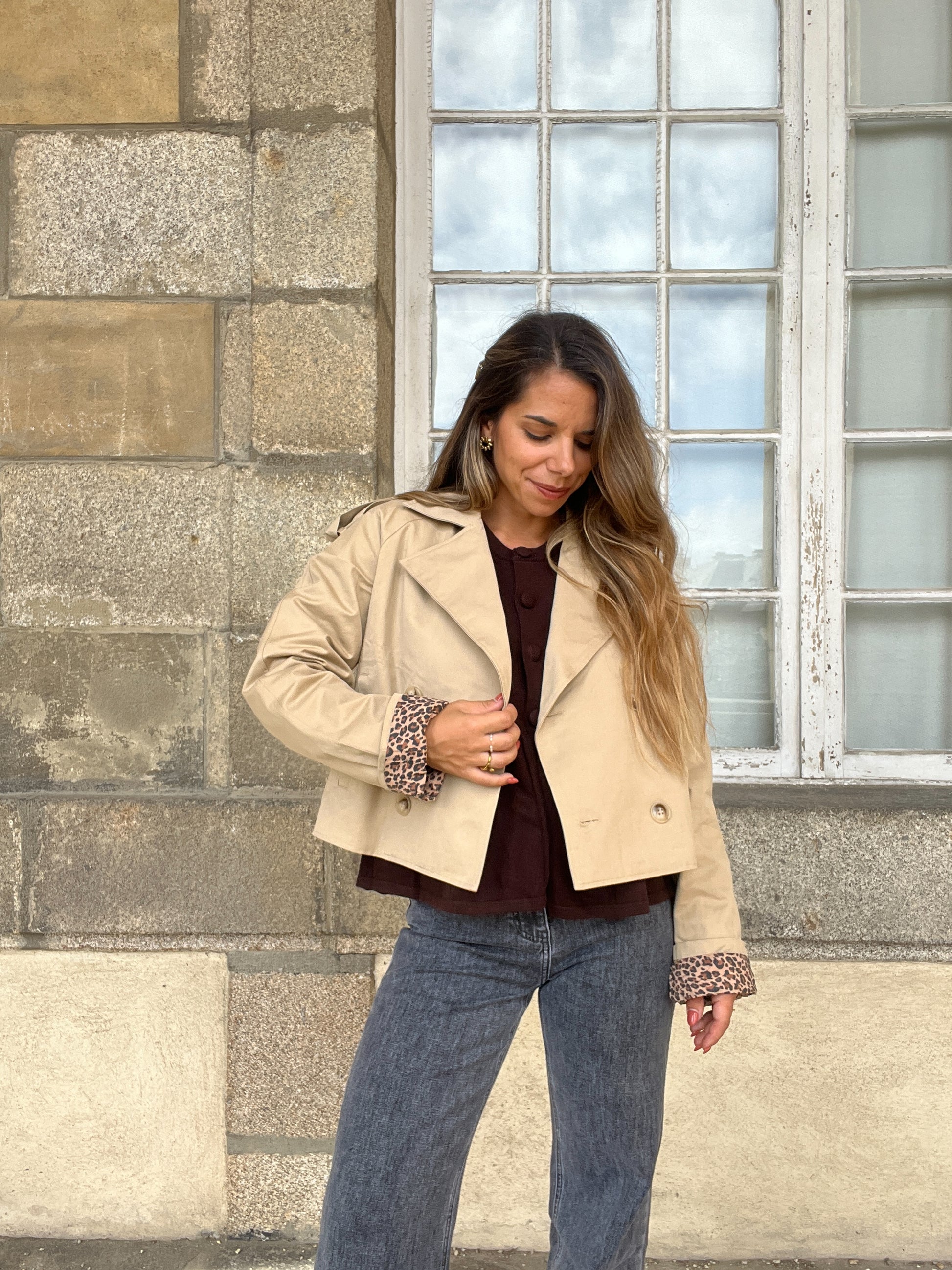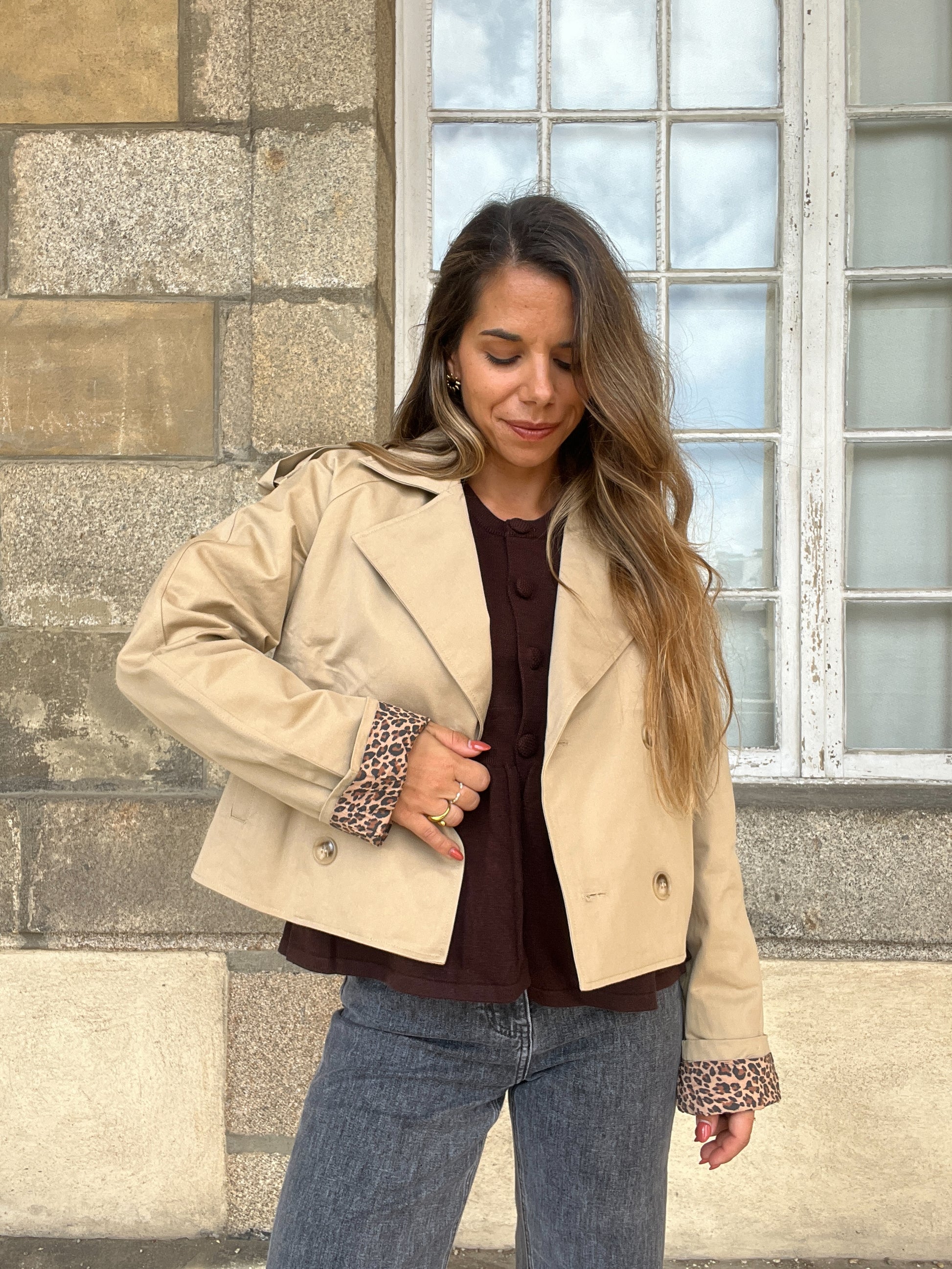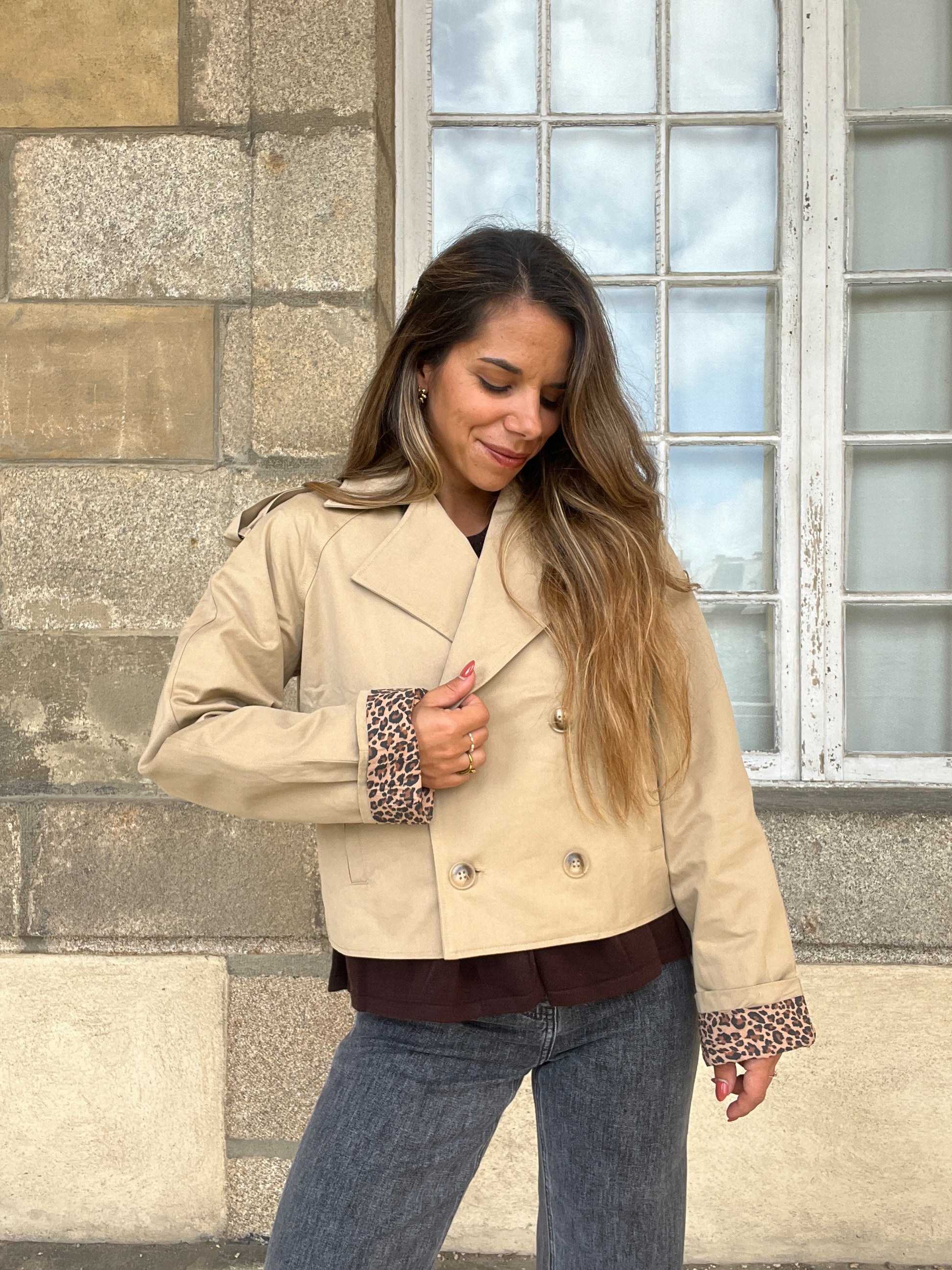 Cette veste trench sera parfaite pour le printemps! Le trench est un intemporel des dressings qui se porte facilement. Avec sa touche léopard en bas des manches, il sera une pièce forte du dressing.