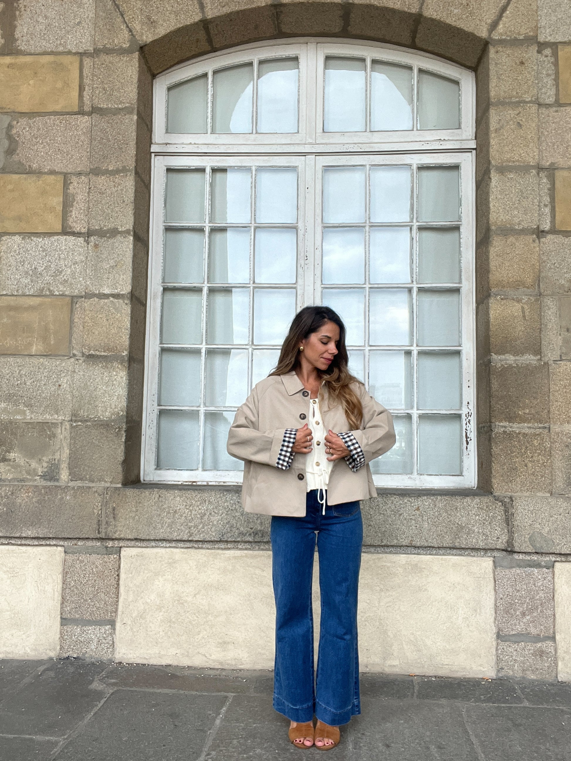Craquez pour notre trench court beige Dalia, doté d’un intérieur en vichy pour une touche originale. Parfait pour la mi-saison, il se porte facilement sur toutes vos tenues, du casual au plus habillé. Convient du 36 au 40/42.