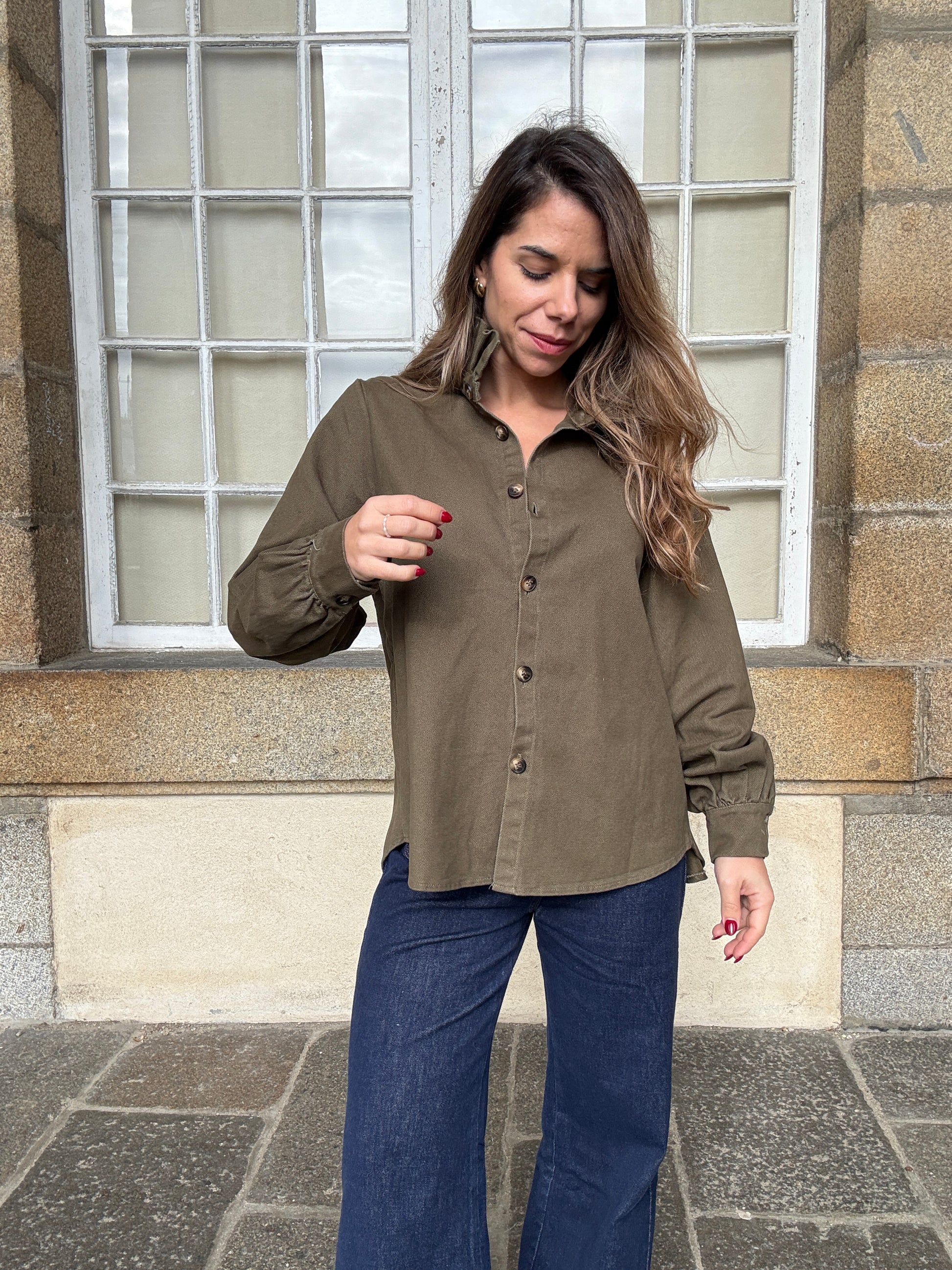 Craquez pour la veste en jean Céleste kaki. Elle se porte pour toutes les saisons : en automne/hiver sous votre manteau et en printemps/été comme veste mi saison. Avec son col relevé et volanté, c’est une pièce forte du dressing!
